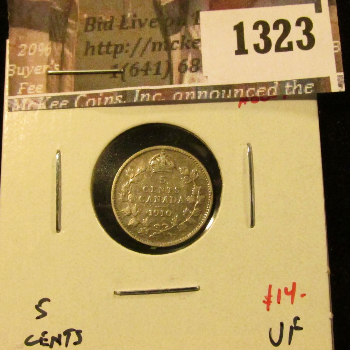1323 . 1910 Canada Five Cent Silver, VF, value $14
