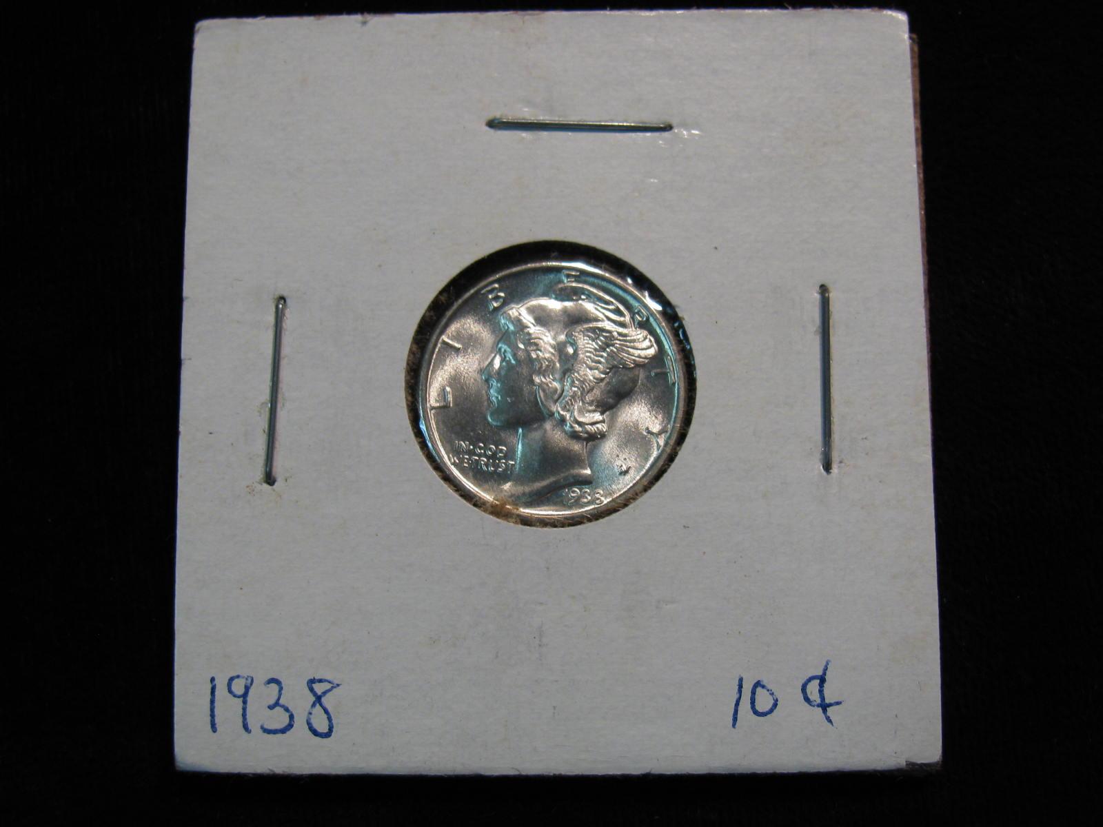 1324. 1938P Mercury Dime. Gem BU.