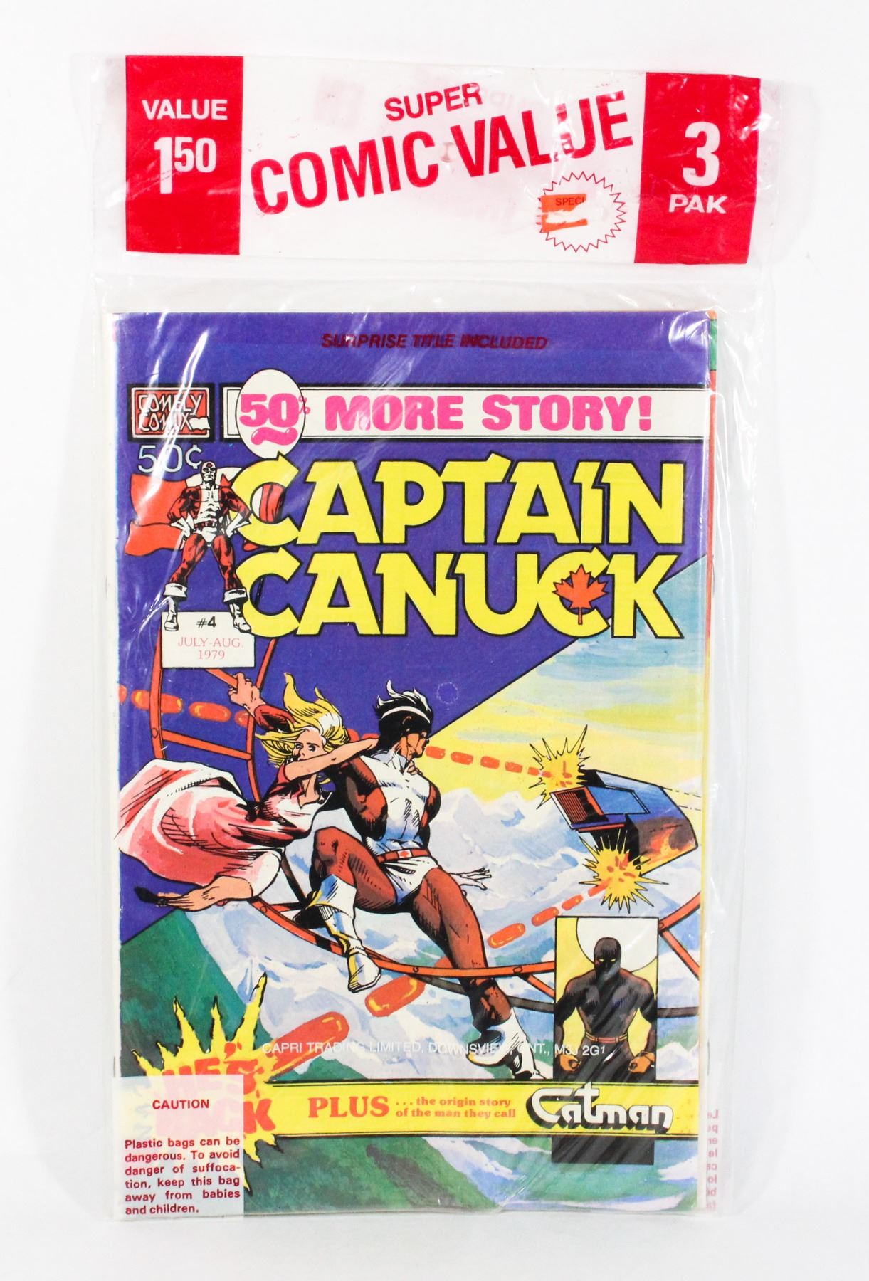 JULY / AUGUST 1979 LOT OF 3 COMICS IN SEALED BAG INCLUDING CAPTAIN CANUCK #4 AND CAPTAIN CANUCK #7
