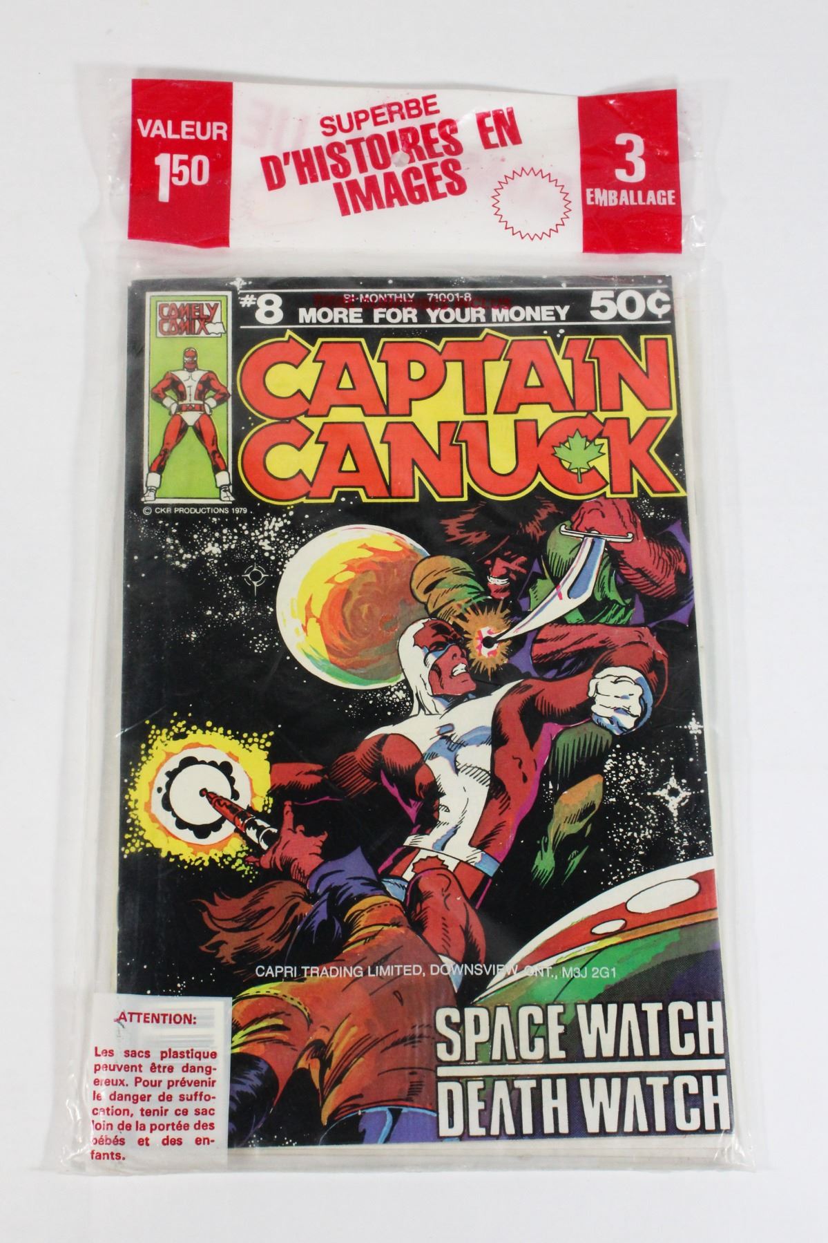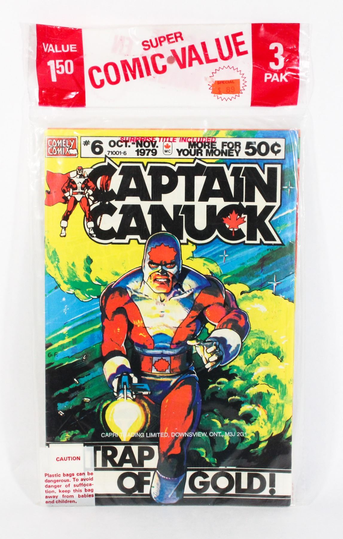 OCTOBER / NOVEMBER 1979 LOT OF 3 COMICS IN SEALED BAG INCLUDING CAPTAIN CANUCK #6 AND CAPTAIN CANUCK #8