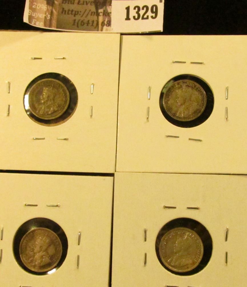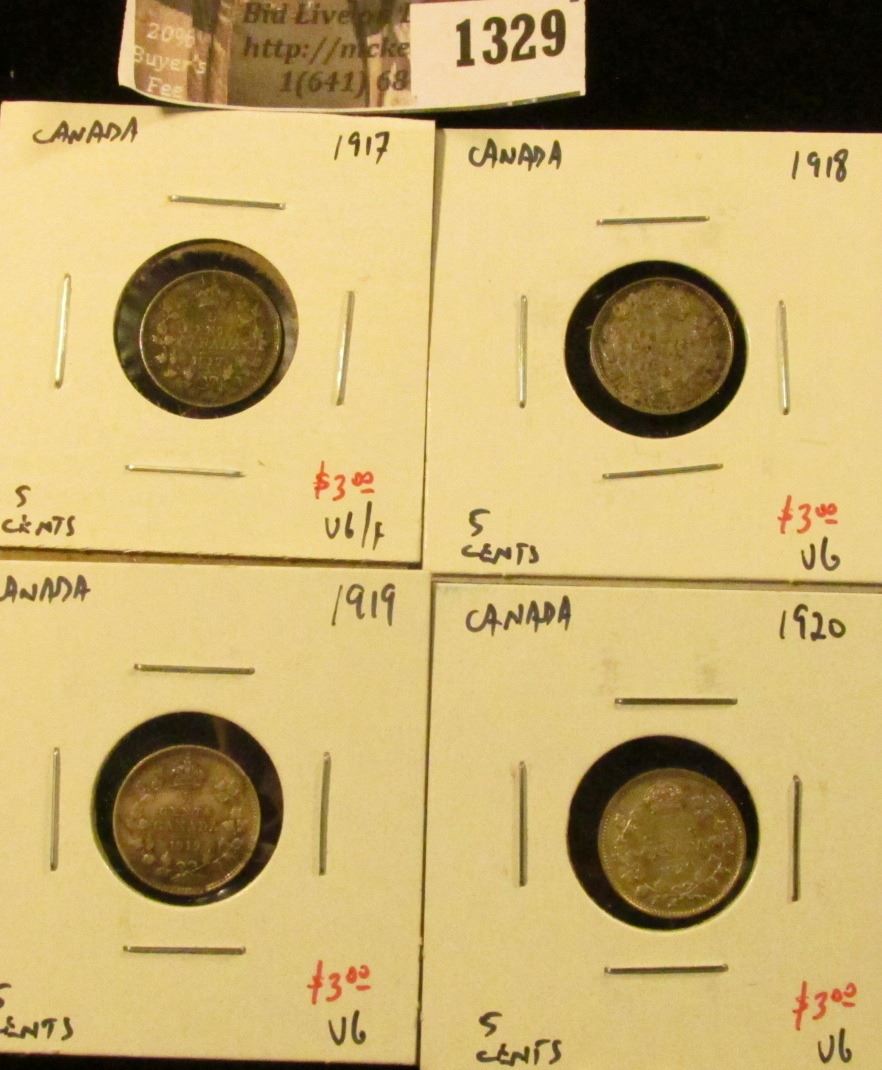 1329 . (4) Canada Five Cent Silvers, 1917 VG/F, 1918 VG, 1919 VG, 1