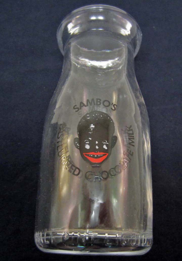 13299 -  BLACK AMERICANA GLASS BOY MILK BOTTLE