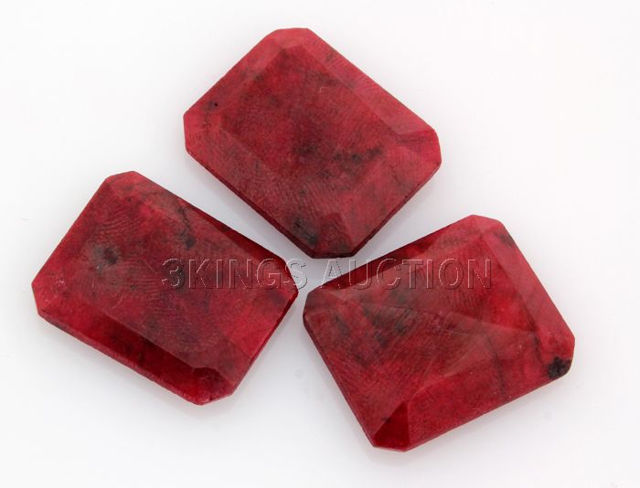 133.44ctw RubyEmeraldCut LooseGemstone lot of 3 **|**|** Mix Sizes 25-26x20-21x5-7mm Natural Ruby Gemstone Flat Emerald Shape lot of 3 ; MSRP: $400