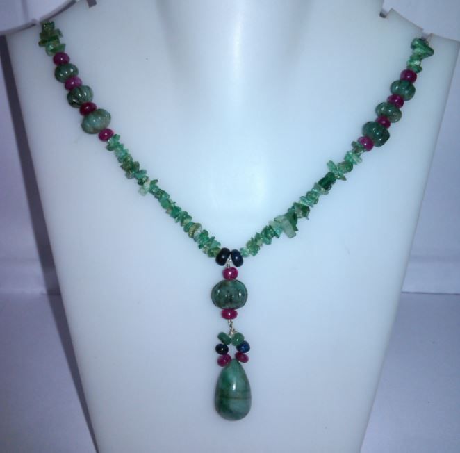 133.70 Ct Necklace of Ruby,Sapphire and Emerald Sterling 925 Silver