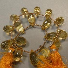 GOLDEN YELLOW CITRINE BRIOLETTE STRAND. IT WEIGHTS 133 CTS. EACH BEAD MEASURES BETWEEN 15x8 AND 17x8 MM. INCLUDED