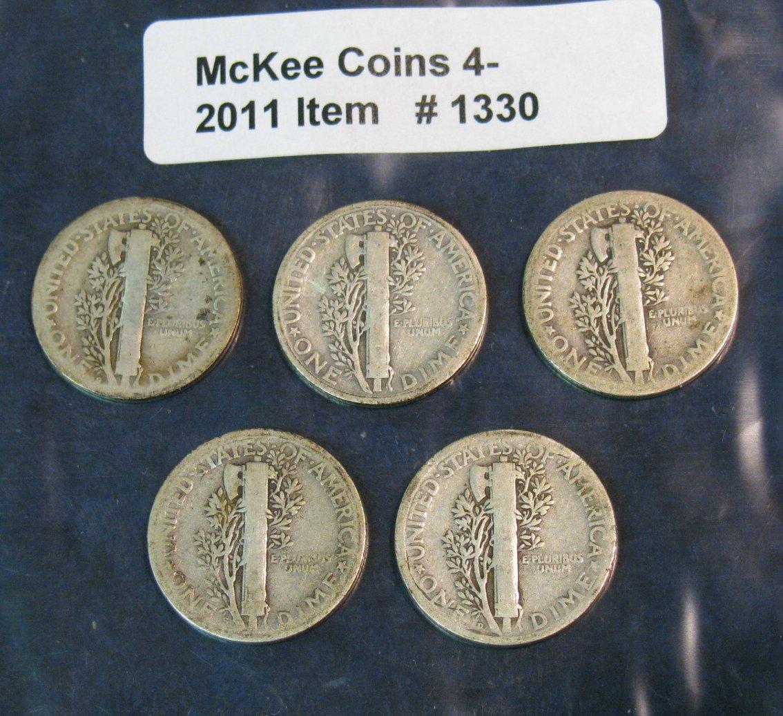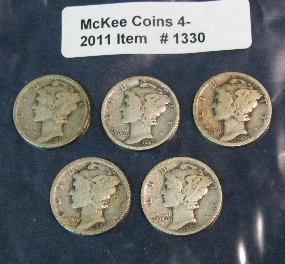 1330. 1925S, 26P, 26D, 27P & 27D Mercury Dimes. G.