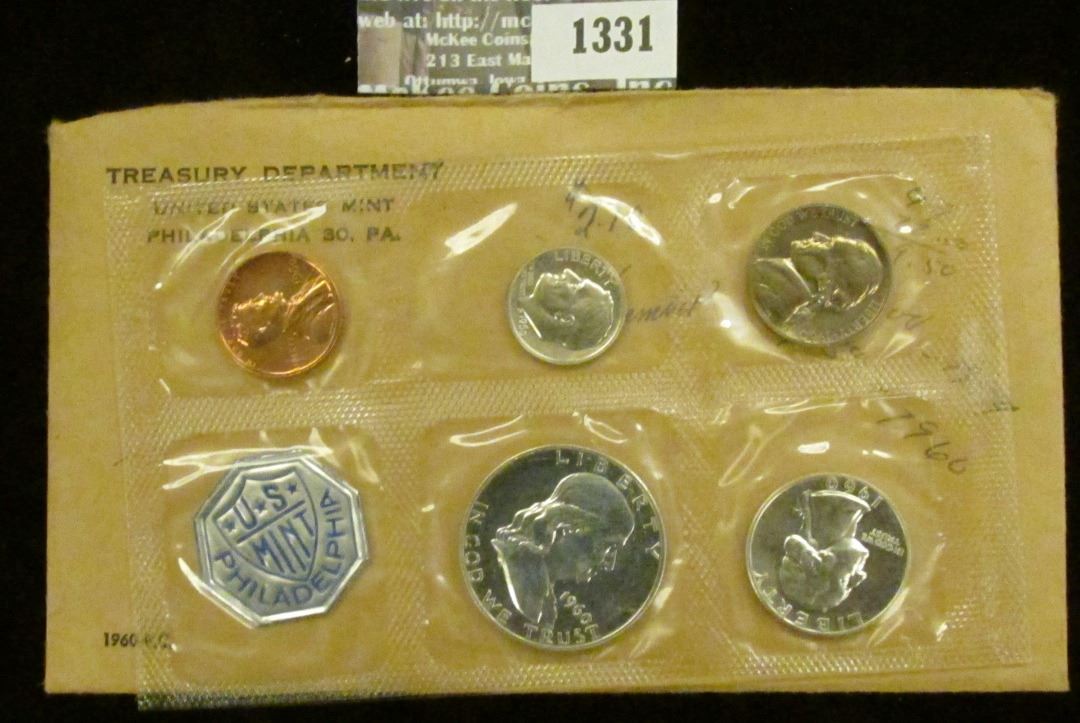 1960 P Large Date U.S. Proof Set in original flat pack and cellophane as issued. (5 pcs.).