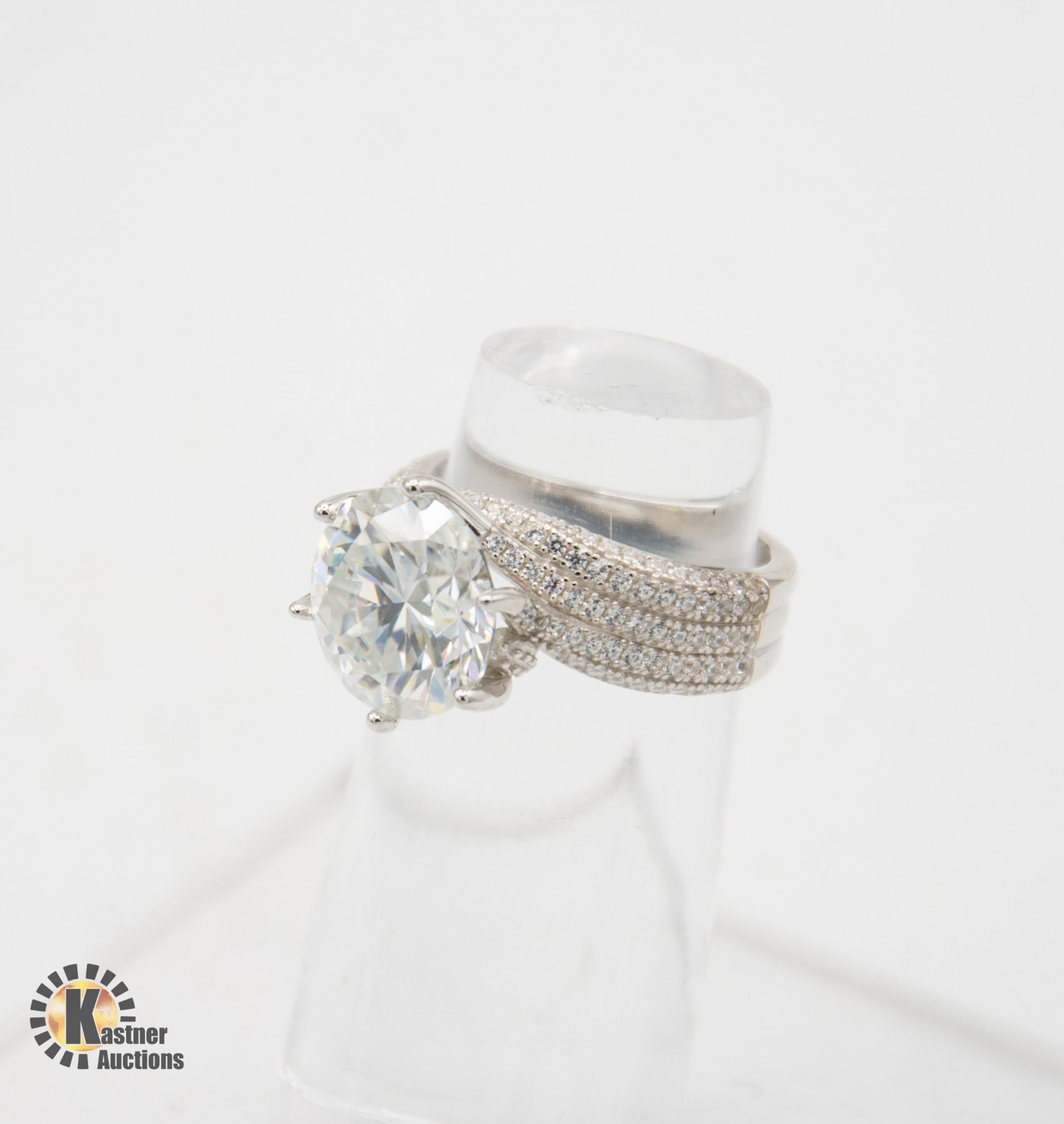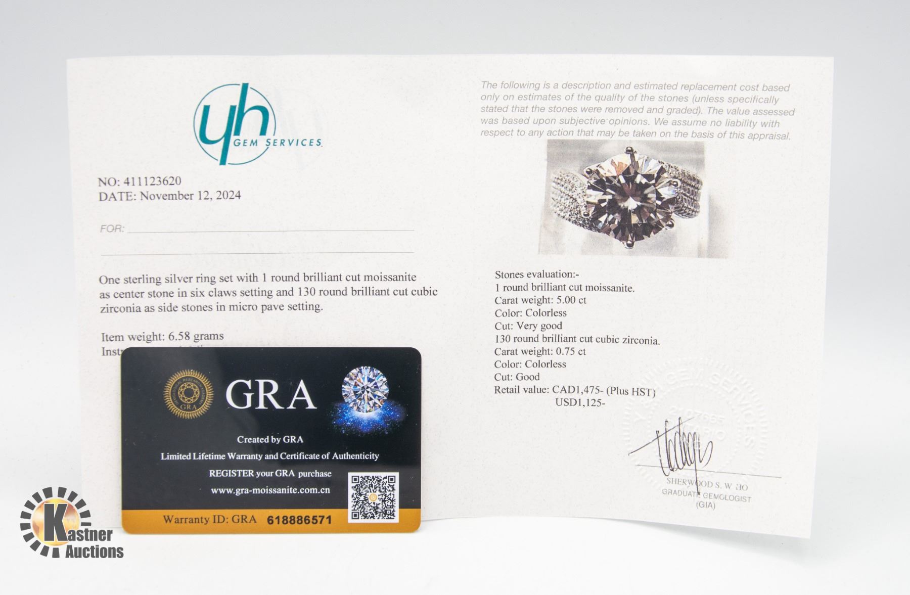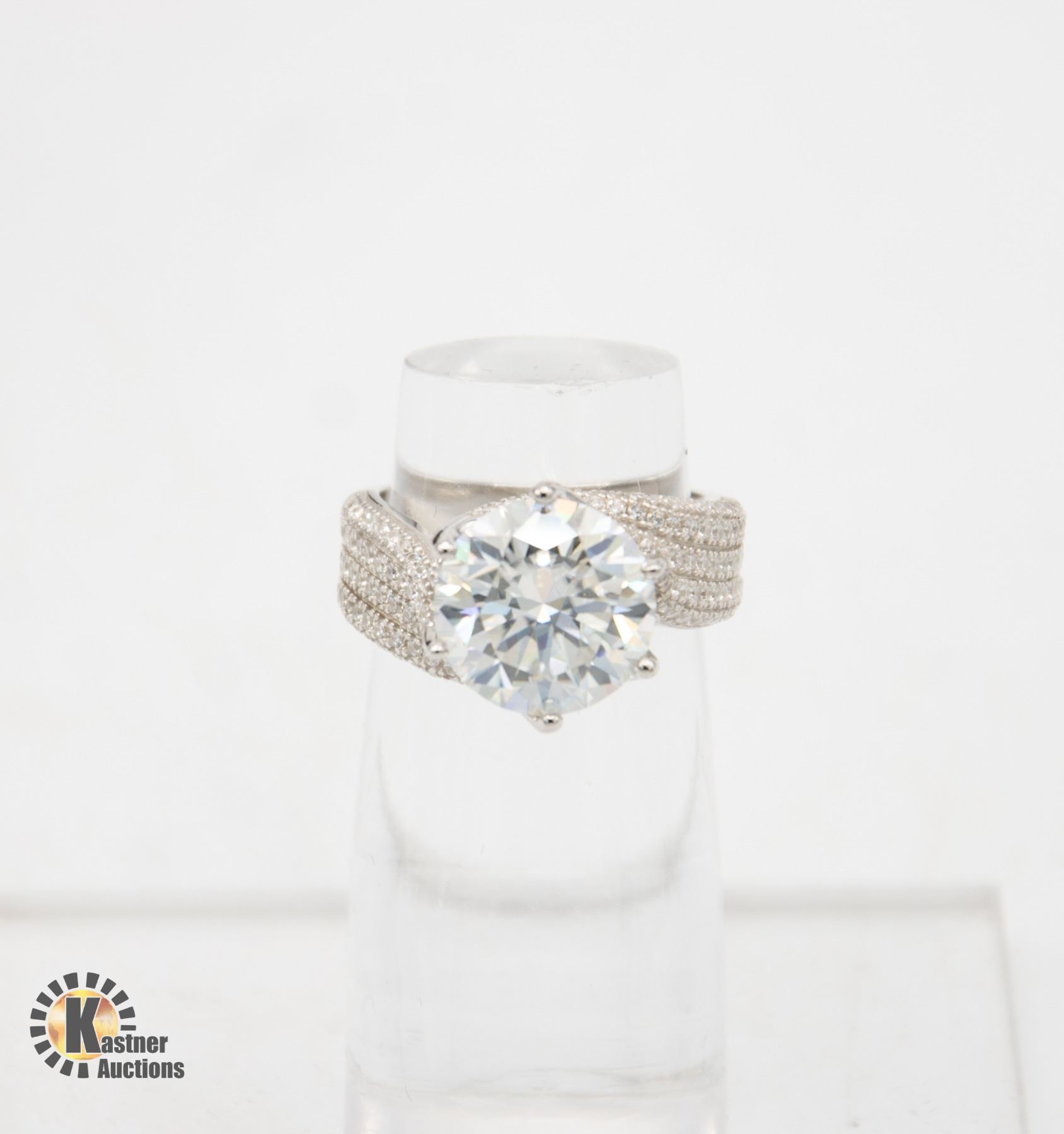 MOISSANITE STONE VVS D COLOR SET IN CENTER WITH 130 ROUND BRILLIANT CUT CZ’S SET IN 925 SILVER RING SIZE 6 RETAIL VALUE $1,475.00 COMES WITH A GIFT BOX