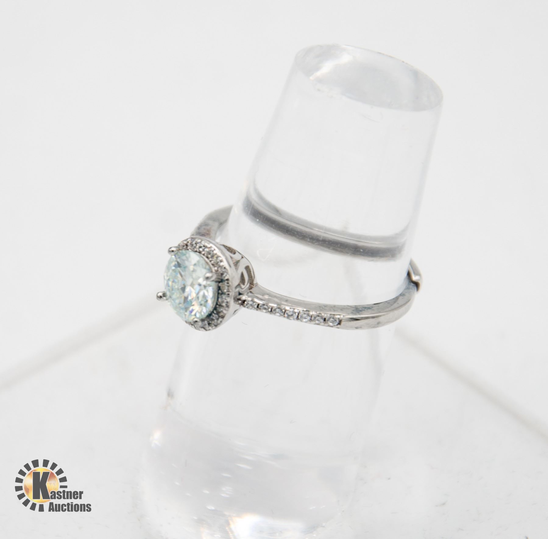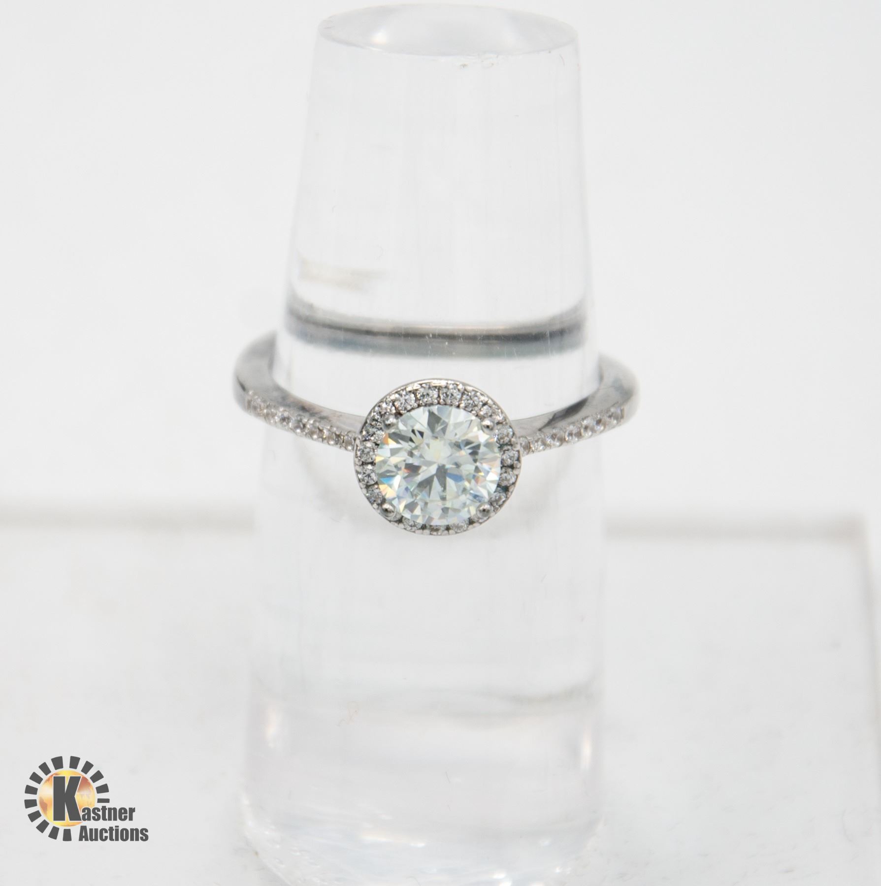 MOISSANITE STONE VVS D COLOR SURROUNDED BY ROUND HALO SET IN 925 SILVER RING SIZE ADJUSTABLE COMES WITH GIFT BOX