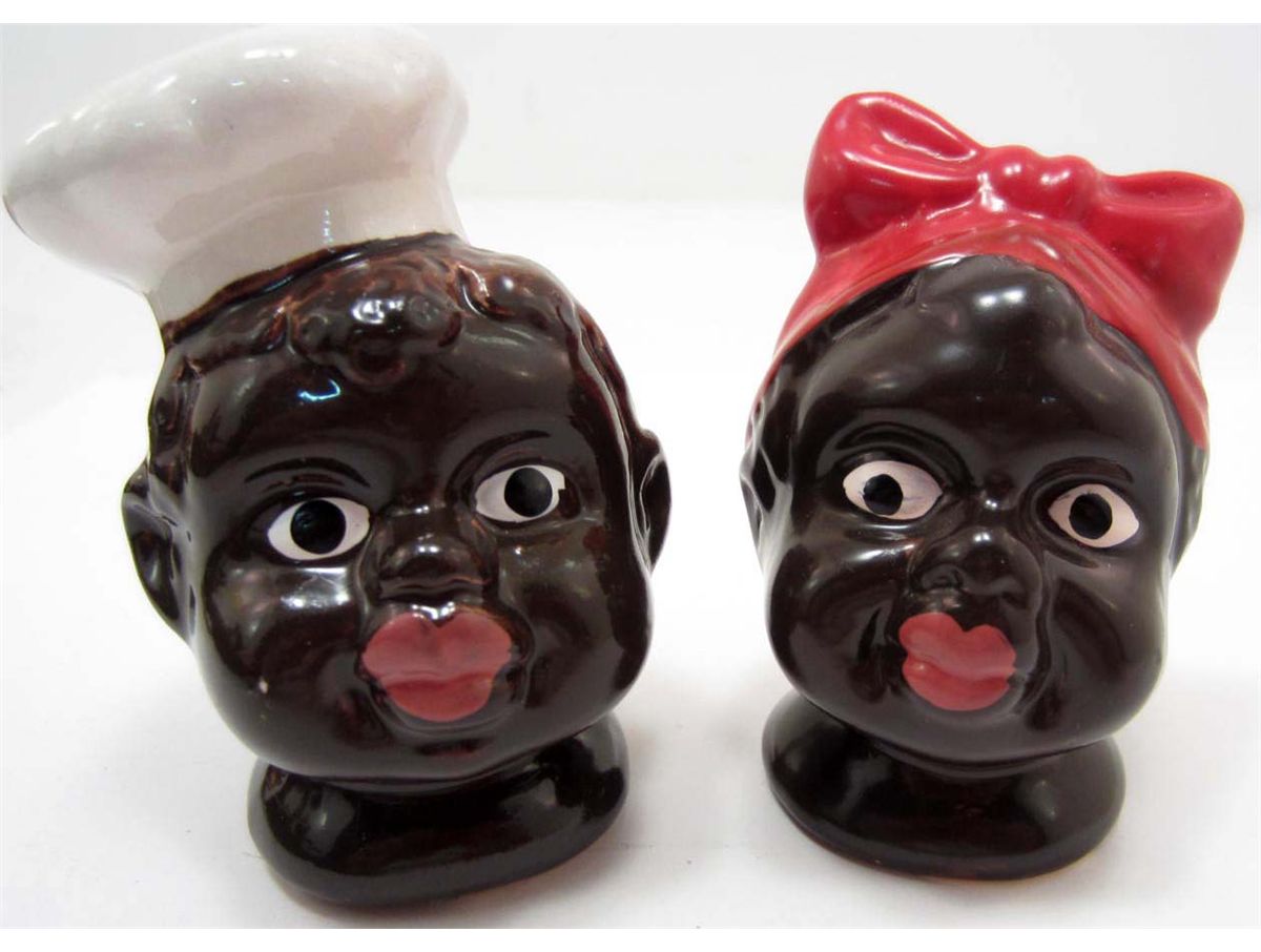 13357 - BLACK AMERICANA CHEF AND MAMMY SALT AND PEPPER SHAKERS
