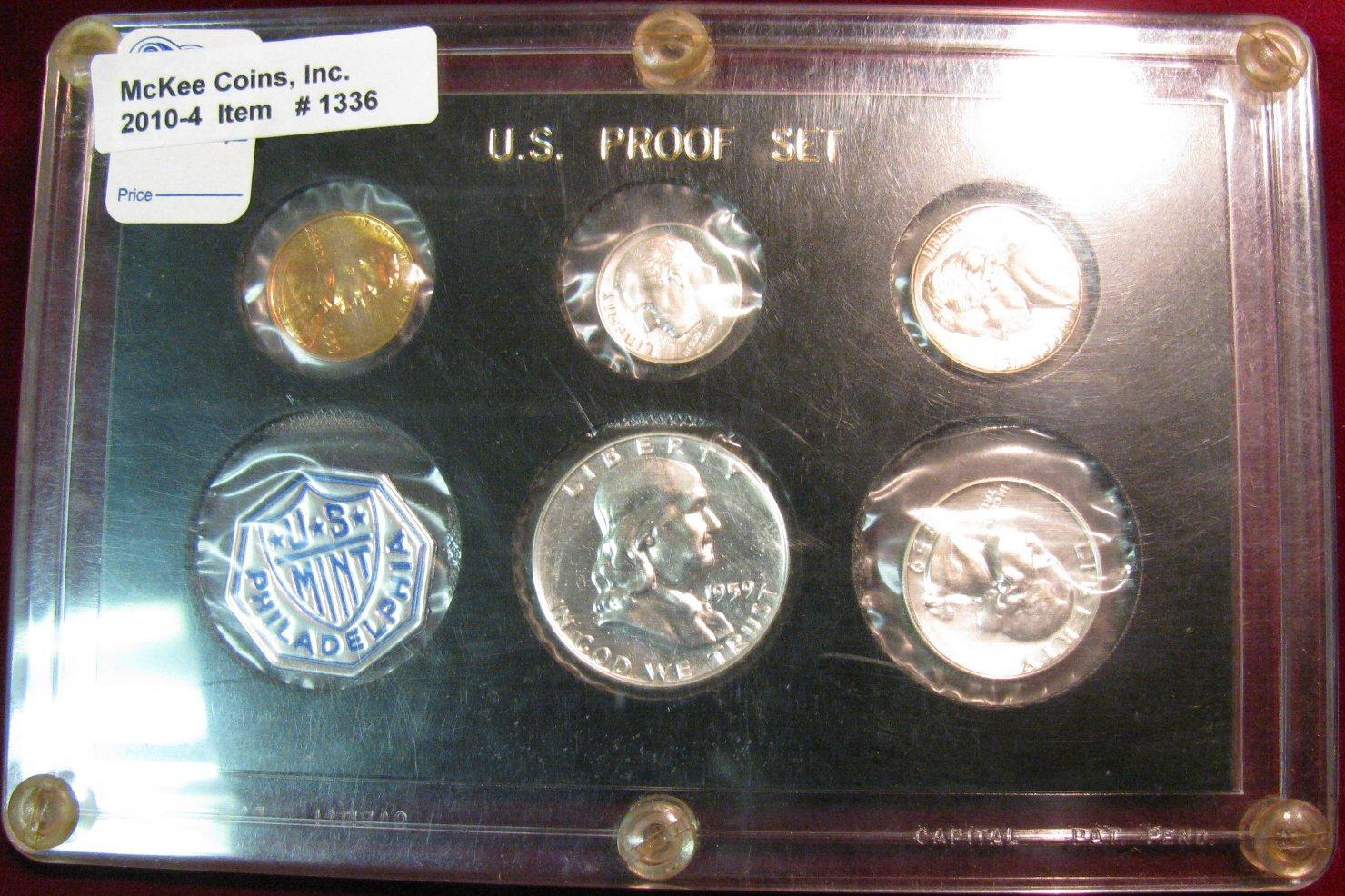 1336. 1959 U.S. Proof Set in cellophane in special hard plastic case. Very attractive.