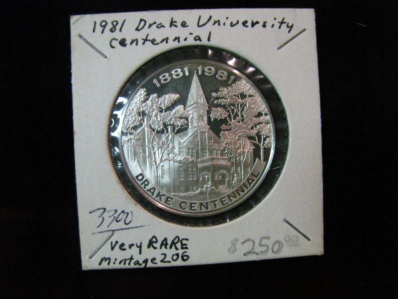 1336. 1981 Drake University Silver Centennial Medal. Only 206 Pieces Struck.