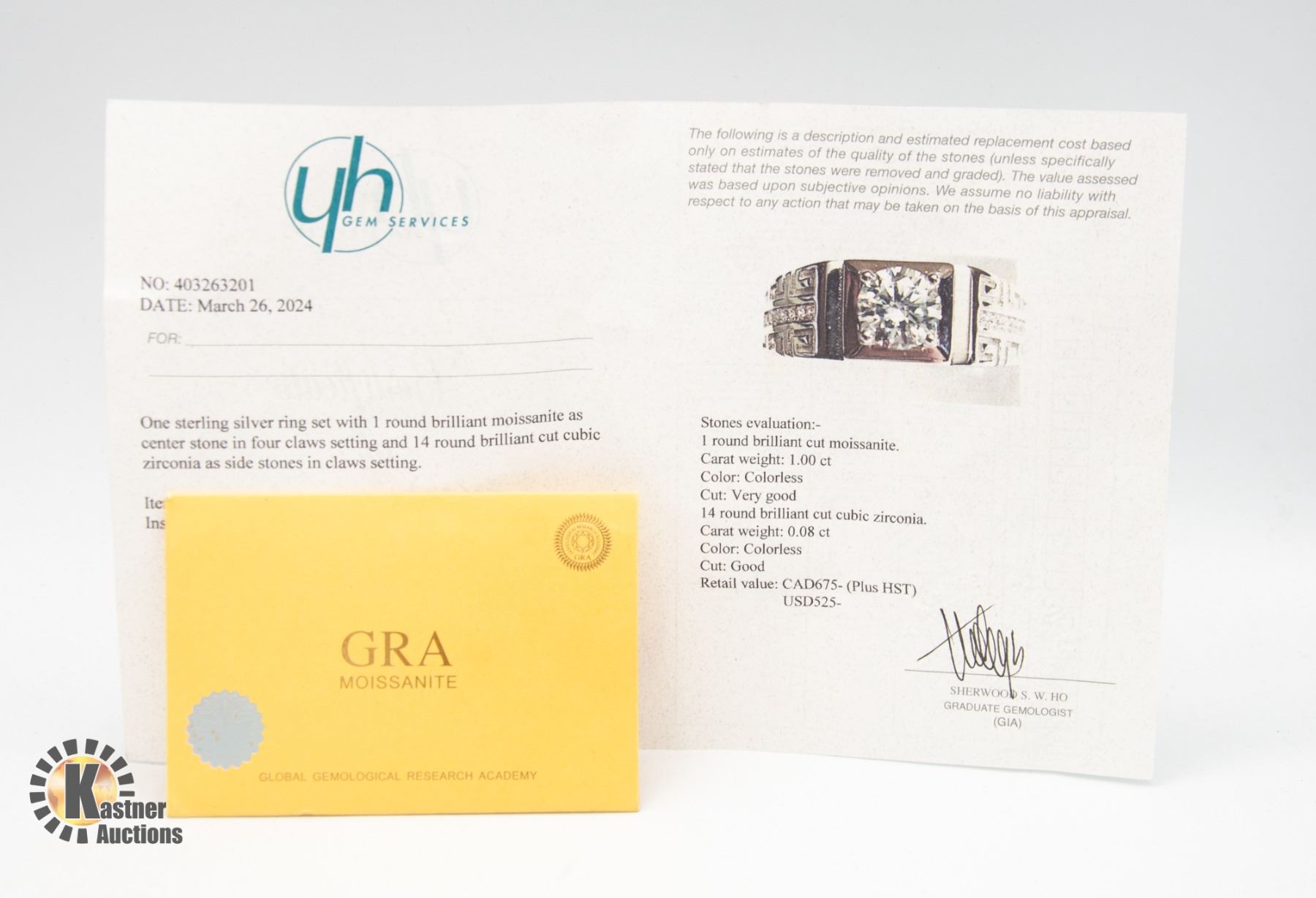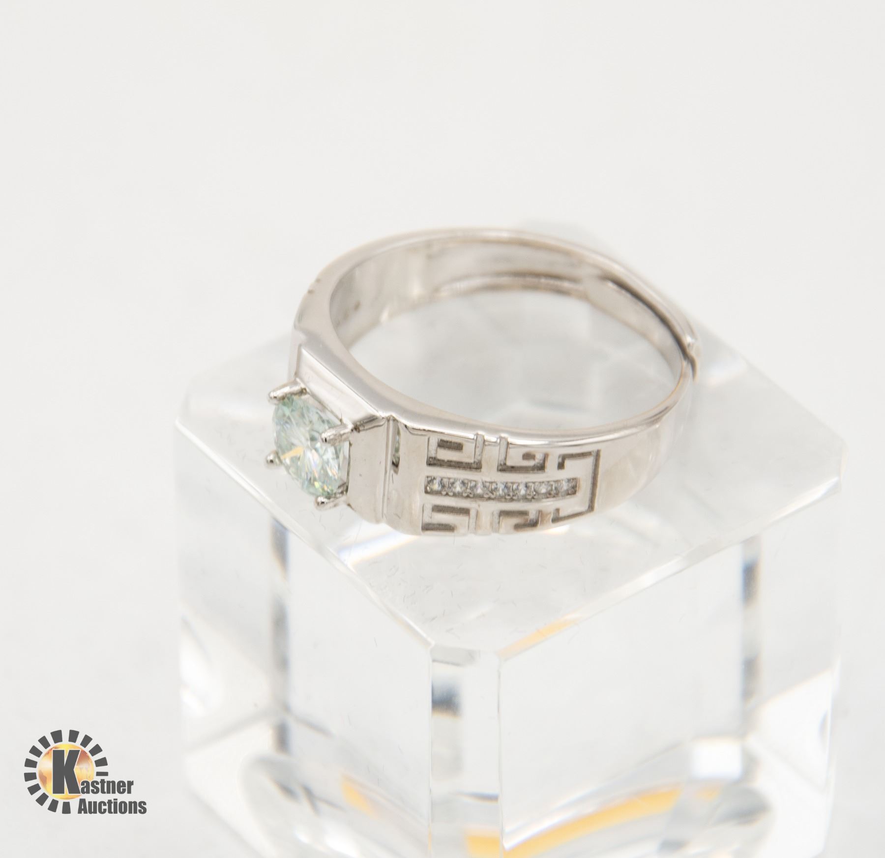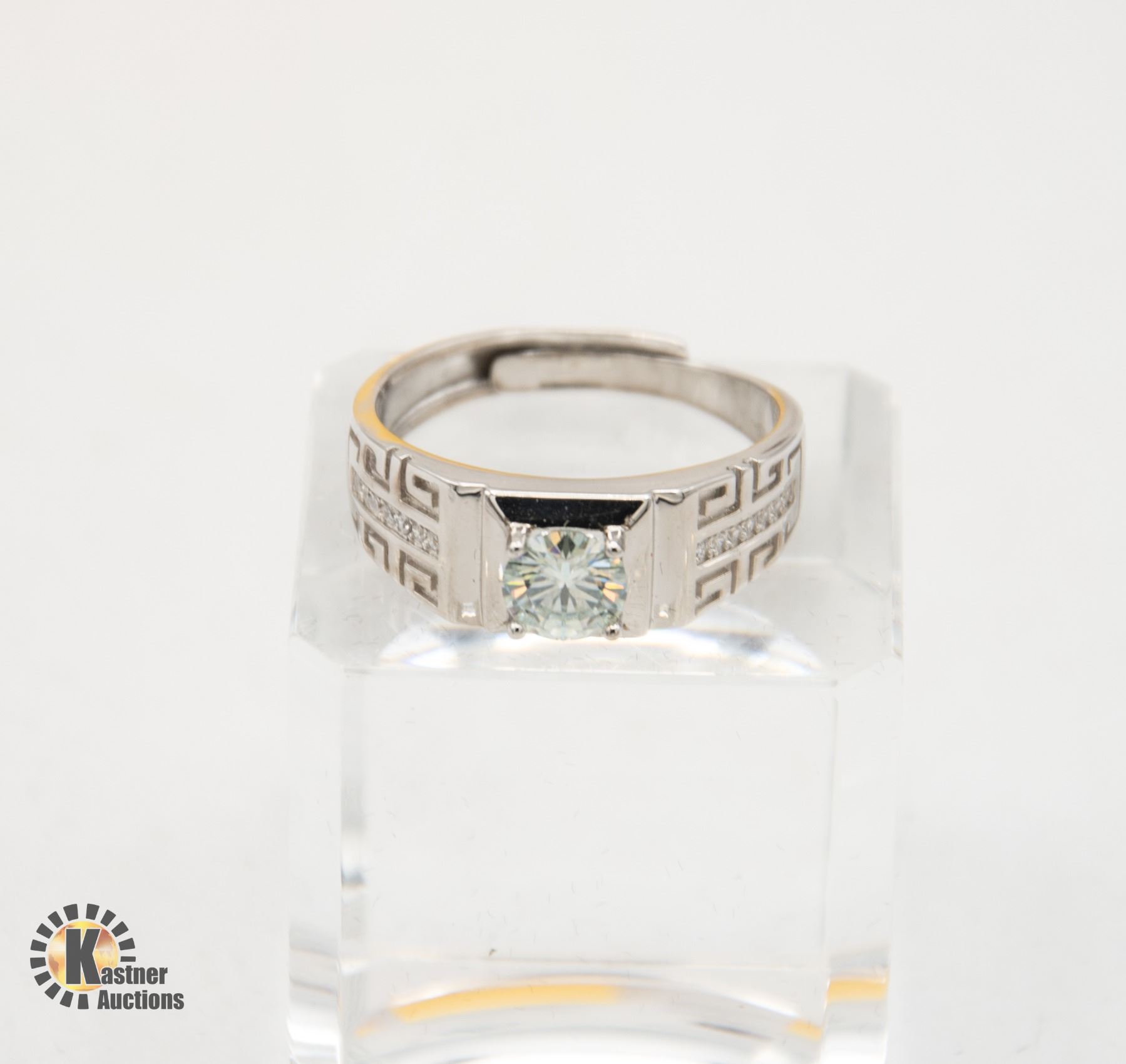 MOISSANITE STONE VVS D COLOR SET IN CENTER SET IN 925 SILVER RING SIZE ADJUSTABLE COMES WITH GIFT BOX