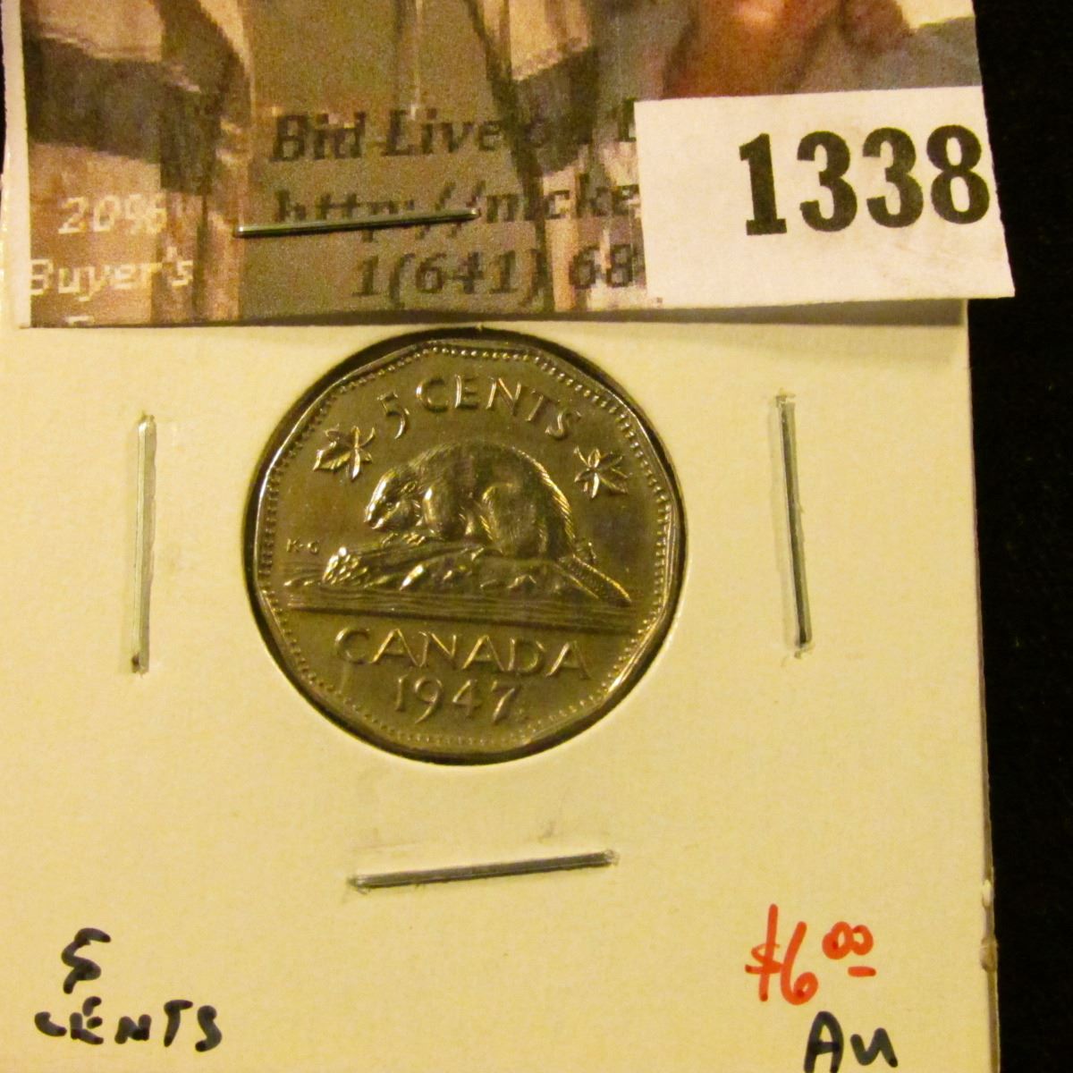 1338 . 1947 ML Canada Five Cents, AU, value $6
