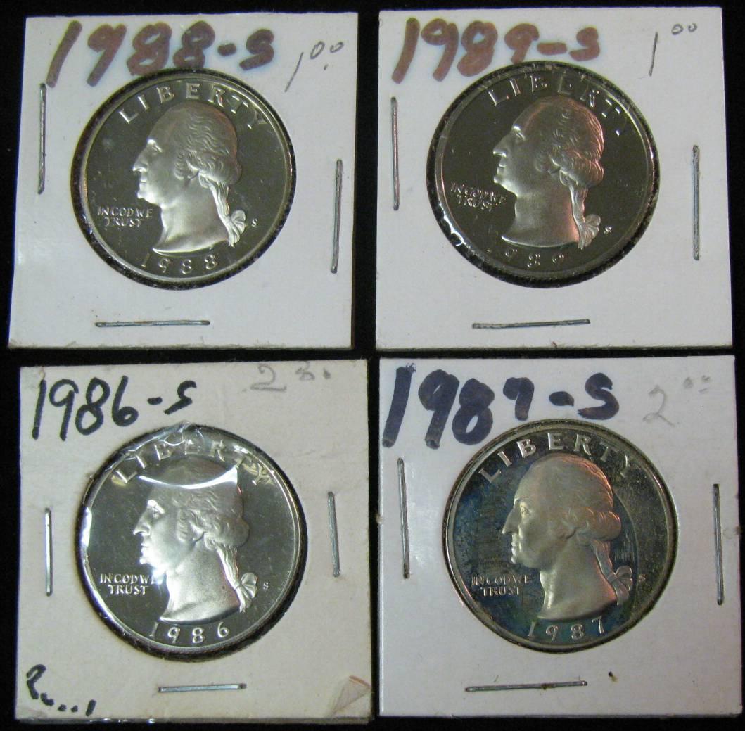 1338. 1986S, 87S, 88S & 89S Proof Washington Quarters.
