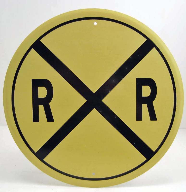 13386 - RAIL ROAD CROSSING ROUND TIN SIGN APPROX 12" DIAMETER