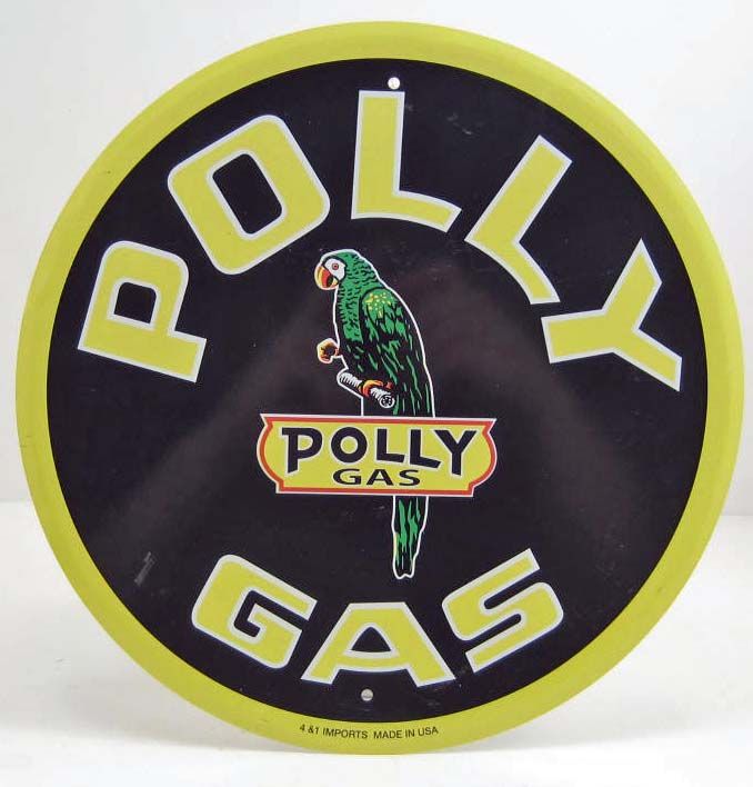 13387 - POLLY GAS ROUND TIN SIGN APPROX 12" DIAMETER