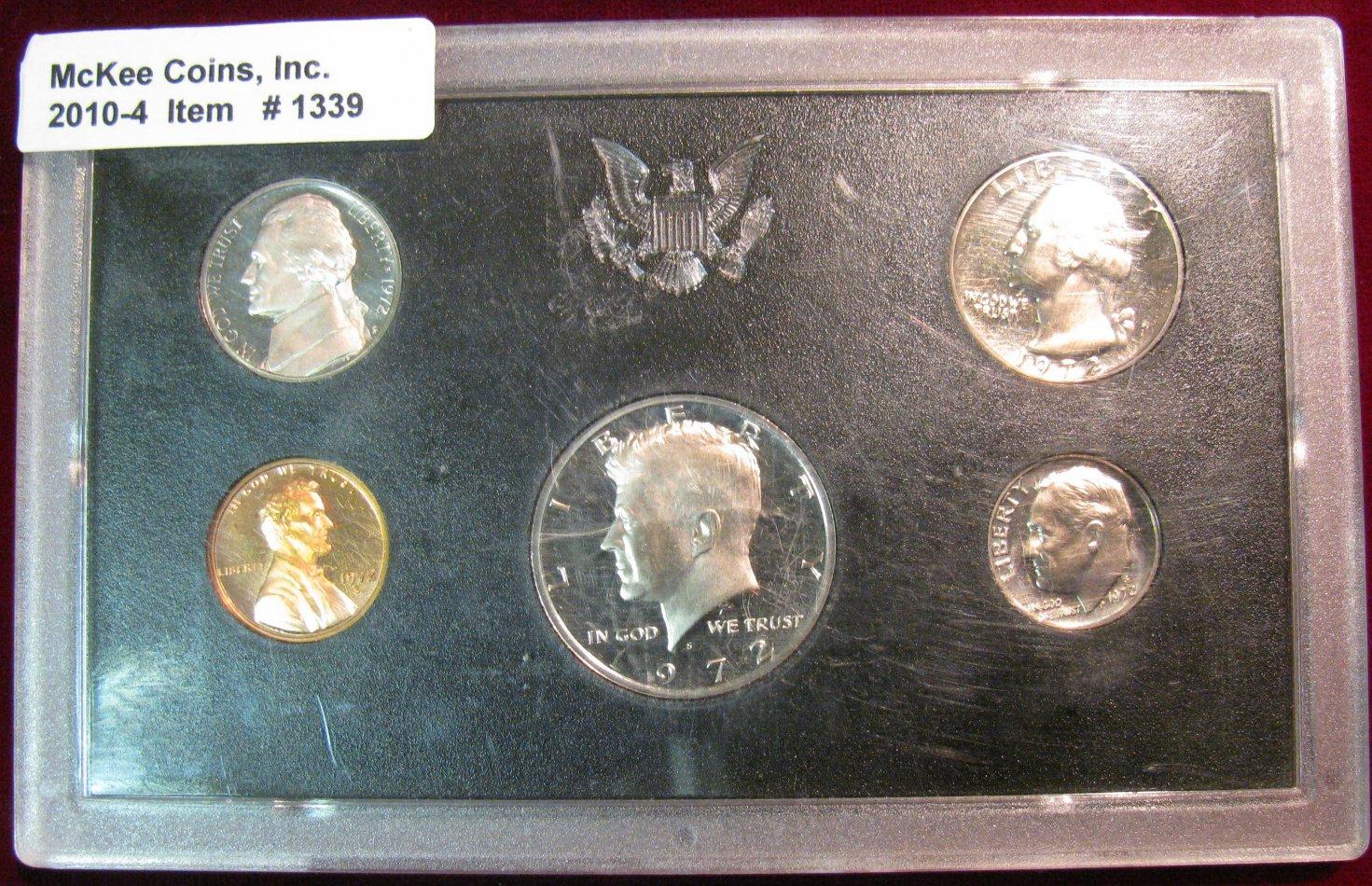 1339. 1972 S U.S. Proof Set in original hard plastic case. Cameo Frosted Half & Jefferson Nickel. No box.