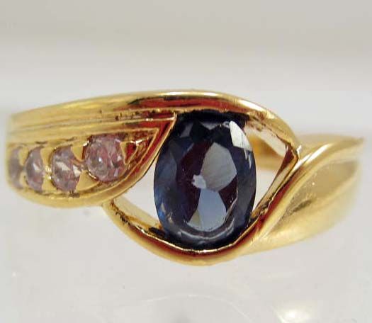 13395 - GOLD PLATED SAPPHIRE & TOPAZ RING - SIZE 7