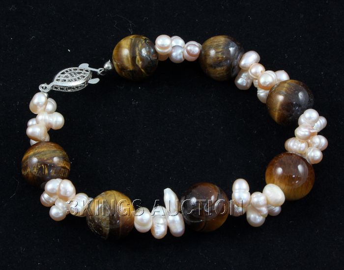 134.65CTW 8" TIGER EYE FRESHWATER PEARL WITH CORAL BRAC **|**|** 134.65CTW 8" TIGER EYE FRESHWATER PEARL WITH CORAL BRACELET PHILIPPINES ; MSRP: $100