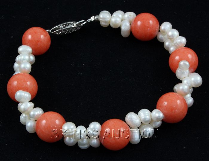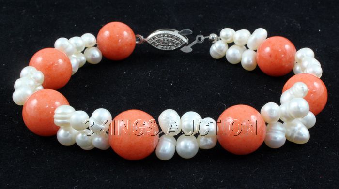 134.7CTW 8" SUNSET ORANGE FRESHWATER PEARL WITH CORAL B **|**|** 134.7CTW 8" SUNSET ORANGE FRESHWATER PEARL WITH CORAL BRACELET PHILIPPINES ; MSRP: $100