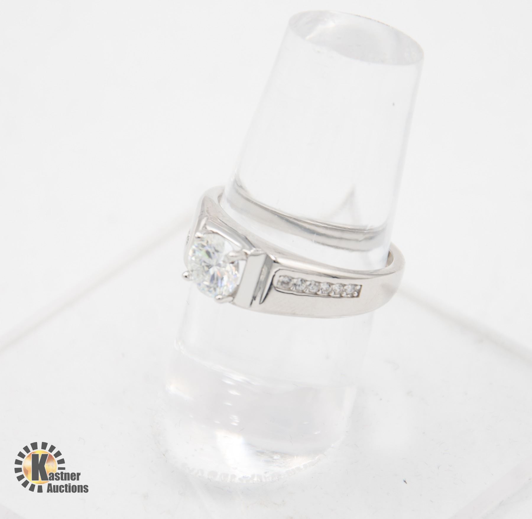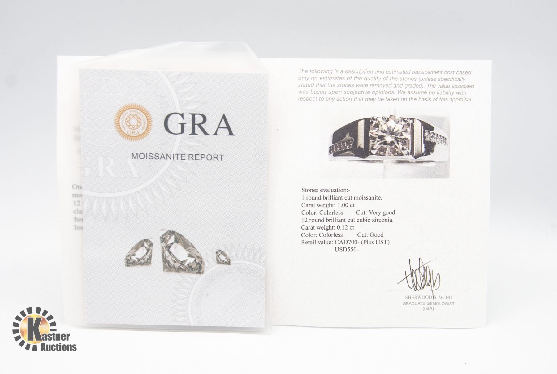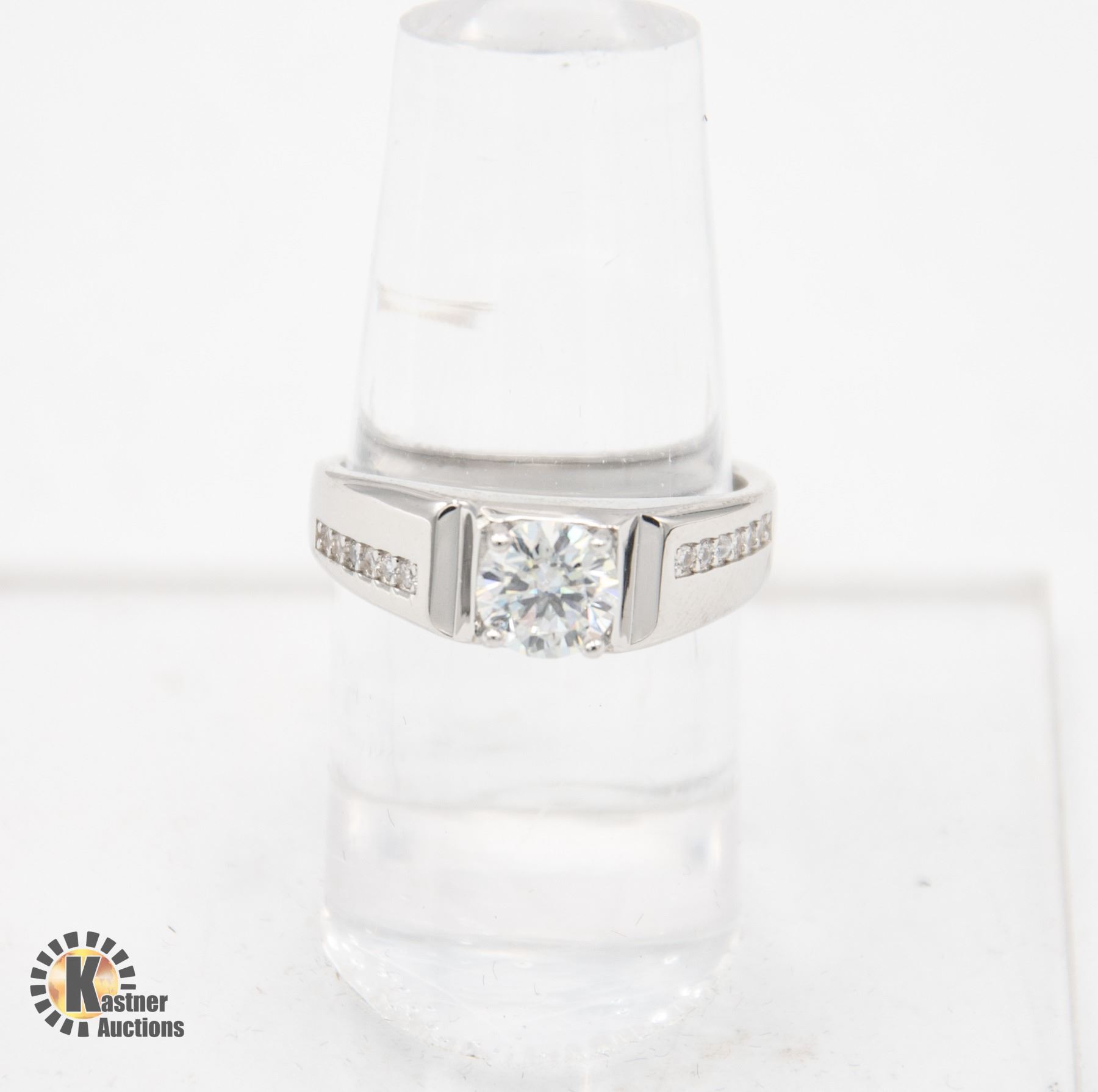 MOISSANITE STONE VVS D COLOR SET IN CENTER SET IN 925 SILVER RING SIZE ADJUSTABLE RETAIL VALUE $700.00 COMES WITH GIFT BOX