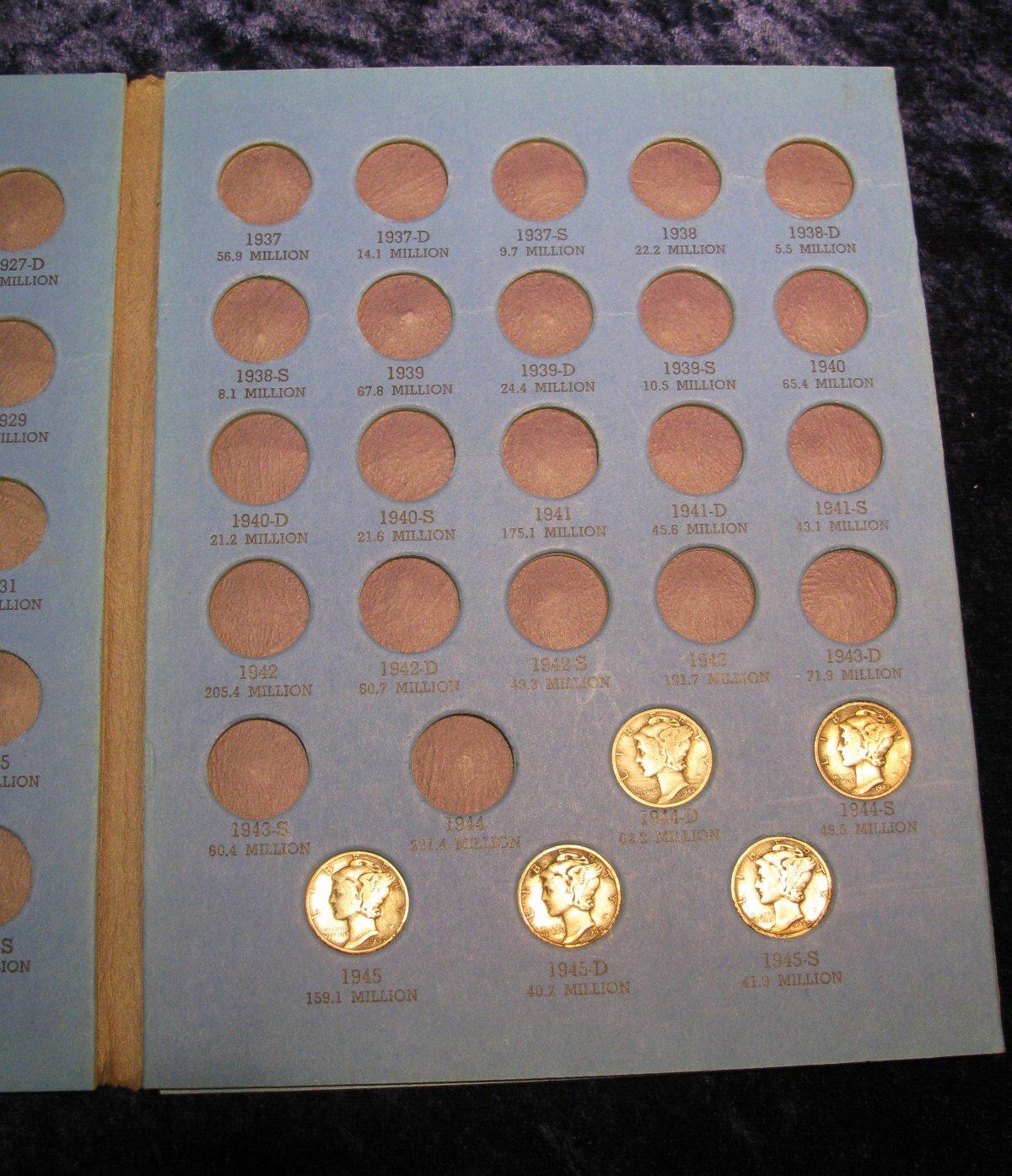 1340. 1944D, 44S, 45P, 45D & 45S Mercury Dimes. VG-F.