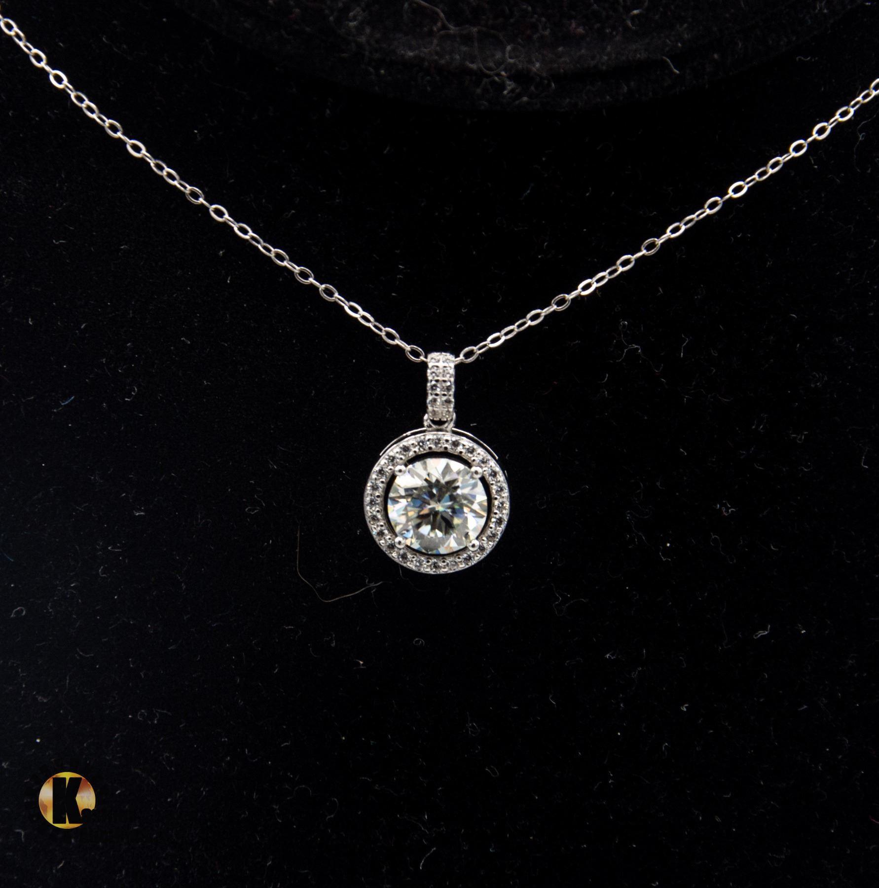MOISSANITE STONE VVS D COLOR SURROUNDED BY ROUND HALO SET IN 925 SILVER PENDANT COMES WITH GIFT BOX