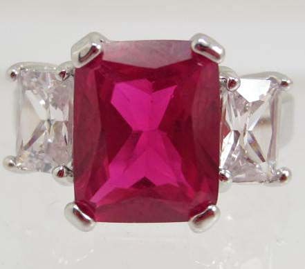 13408 - WHITE GOLD PLATED RUBY & TOPAZ RING - SIZE 6
