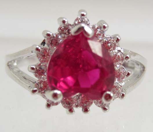 13409 - WHITE GOLD PLATED RUBY & TOPAZ RING - SIZE 6