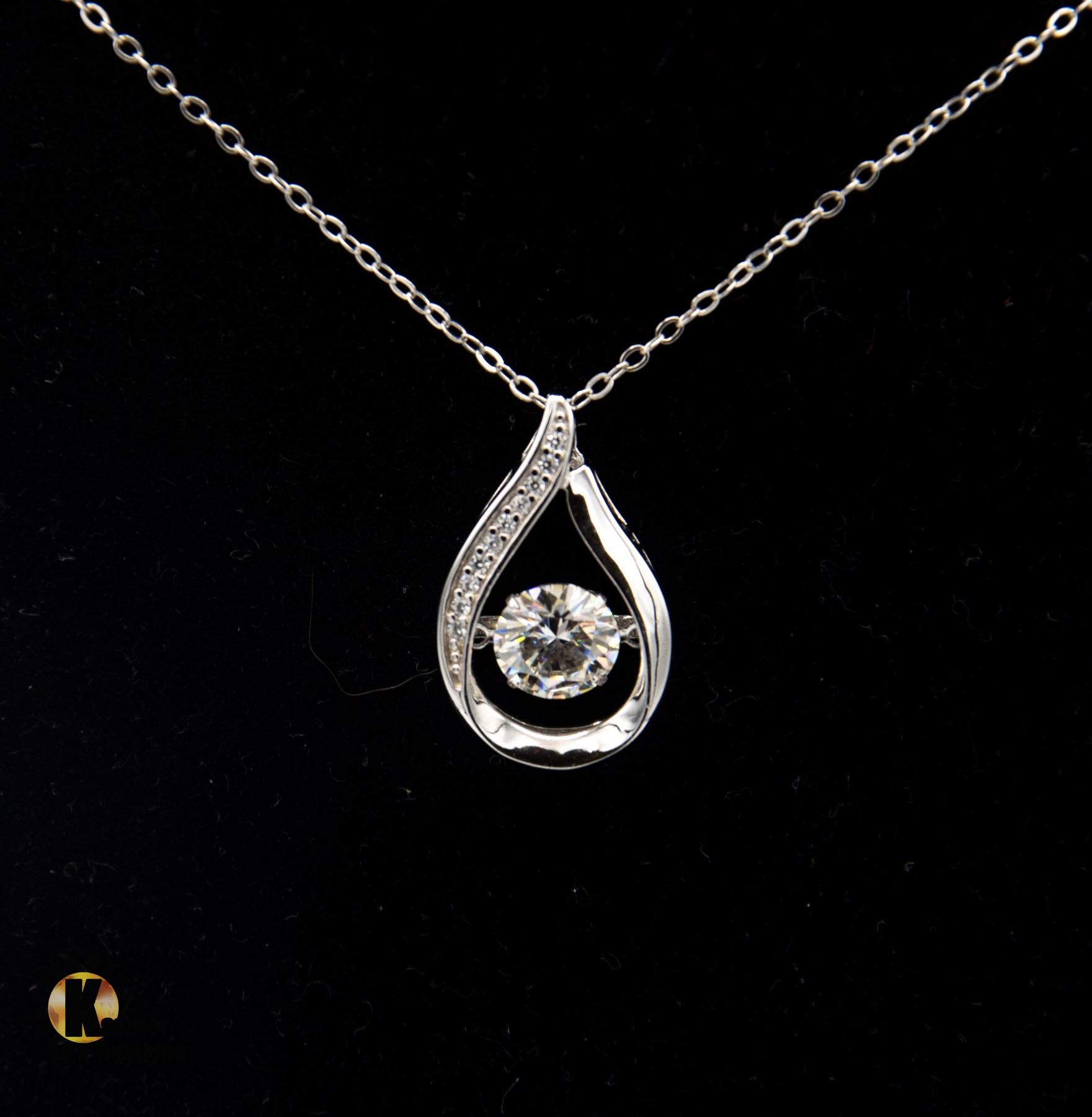 BRILLIANT CUT MOISSANITE STONE VVS D COLOR SET IN CENTER SURROUNDED BY TEAR DROP WITH ROUND CZ’S SET IN 925 SILVER PENDANT RETAIL VALUE $750.00 COMES WITH GIFT BOX