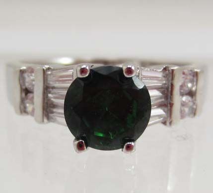 13414 - WHITE GOLD PLATED EMERALD & TOPAZ RING - SIZE 7.25