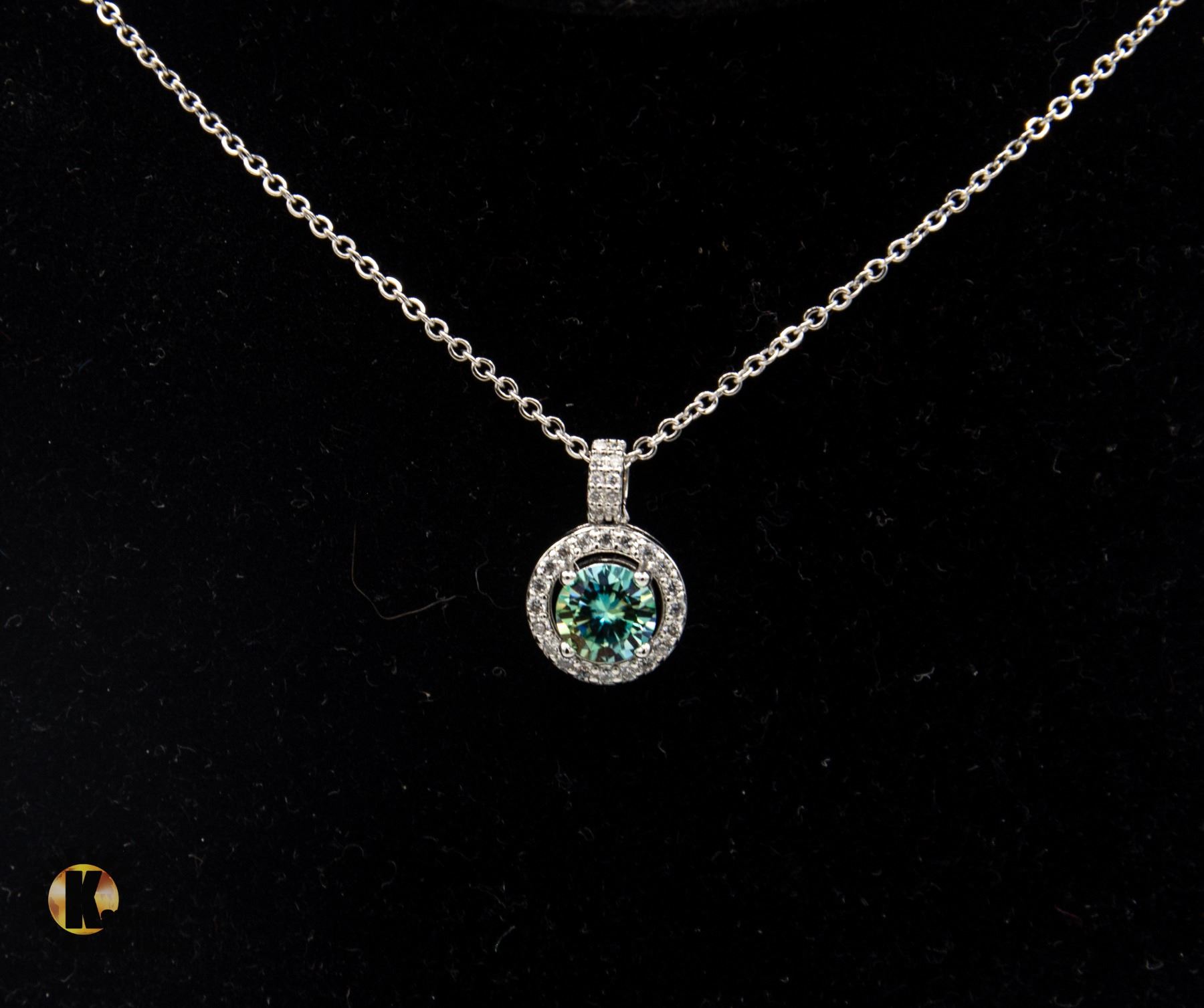MOISSANITE STONE VVS BLUE COLOR SURROUNDED BY ROUND HALO SET IN 925 SILVER PENDANT COMES WITH GIFT BOX