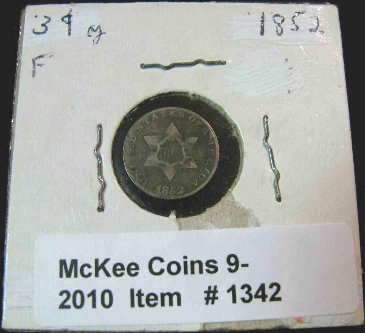 1342. 1852 U.S. Three Cent Silver. F-12.