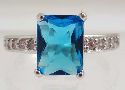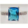 13425 - WHITE GOLD PLATED SAPPHIRE & TOPAZ RING - SIZE 7.25