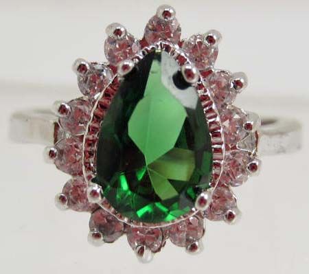13427 - WHITE GOLD PLATED EMERALD & TOPAZ RING - SIZE 6.75