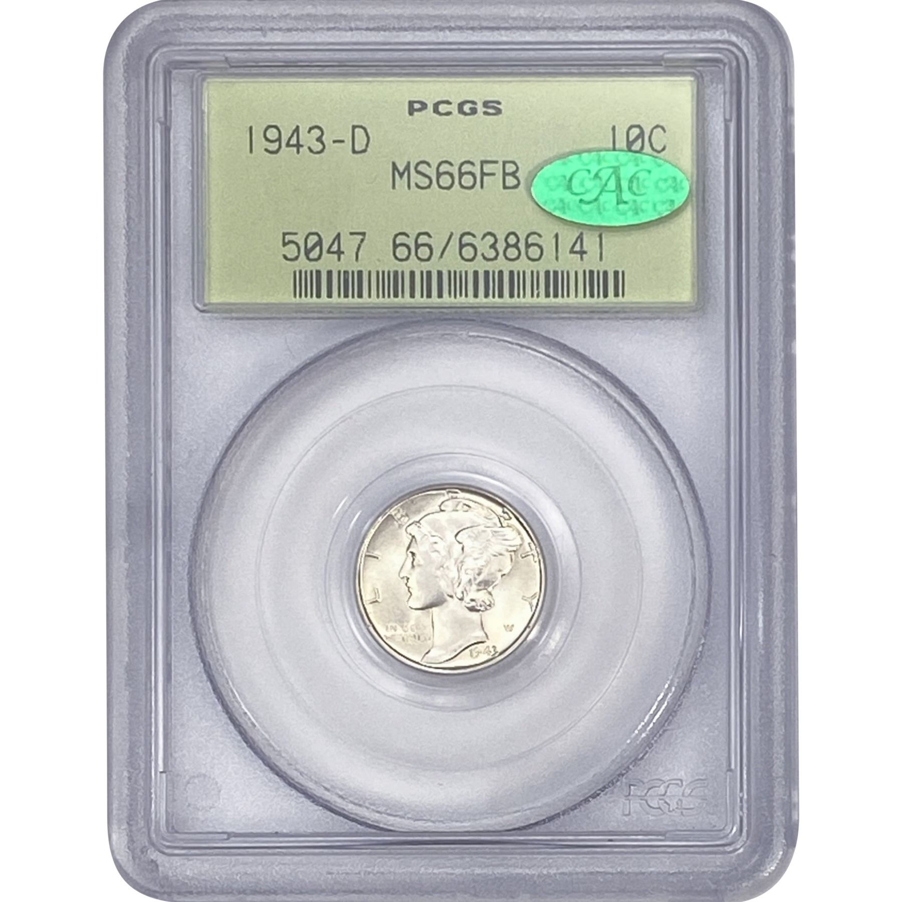 1343-D CAC Mercury Silver Dime PCGS MS66 FB