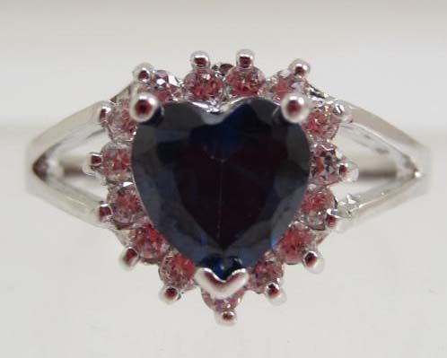 13431 - WHITE GOLD PLATED SAPPHIRE & TOPAZ RING - SIZE 7
