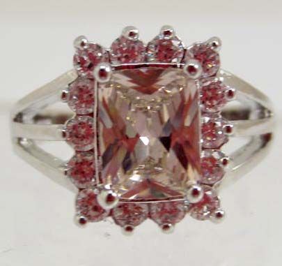 13435 - WHITE GOLD PLATED PINK SAPPHIRE & TOPAZ RING - SIZE 7