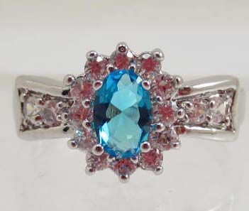 13437 - WHITE GOLD PLATED AQUAMARINE & TOPAZ RING - SIZE 6