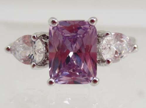 13439 - WHITE GOLD PLATED AMETHYST & TOPAZ - SIZE 6.25