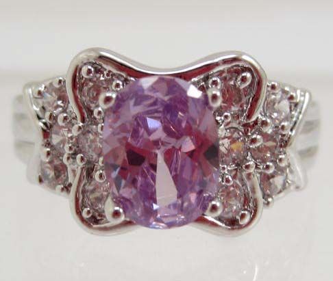 13440 - WHITE GOLD PLATED AMETHYST & TOPAZ RING - SIZE 7