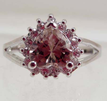 13444 - WHITE GOLD PLATED PINK SAPPHIRE & TOPAZ RING - SIZE 7