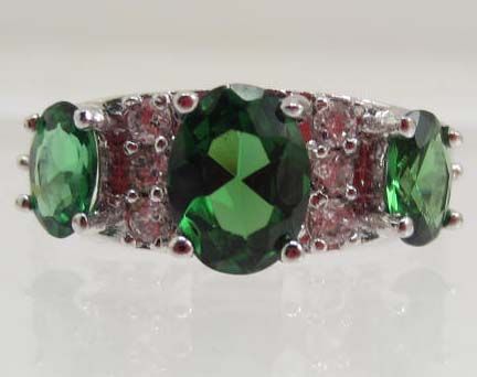 13446 - WHITE GOLD PLATED EMERALD & TOPAZ RING - SIZE 7