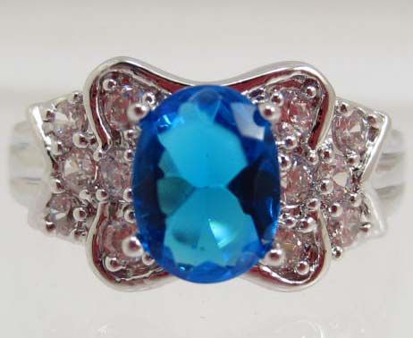 13447 - WHITE GOLD PLATED SAPPHIRE & TOPAZ RING - SIZE 7