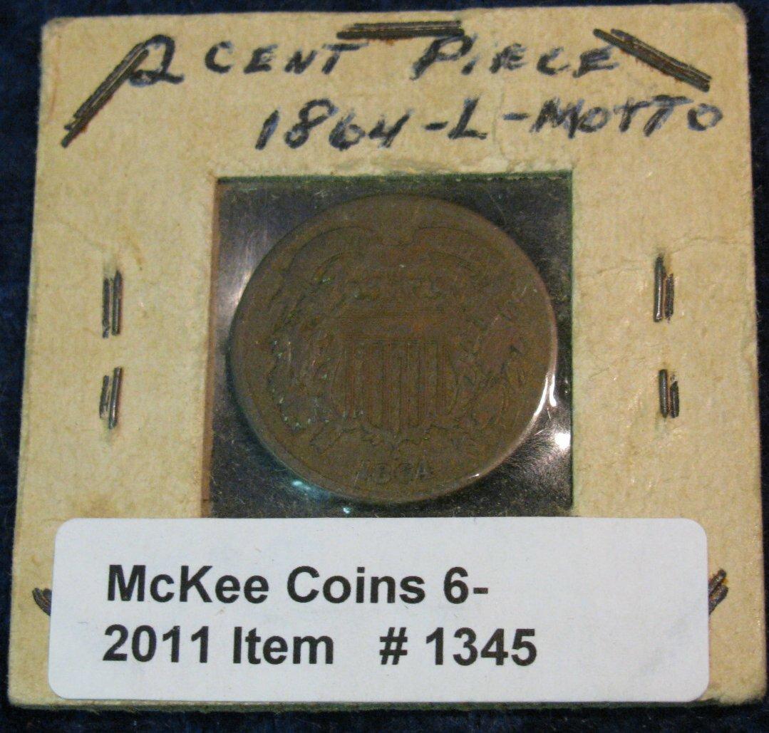 1345. 1864 Large Motto U.S. Two Cent Piece. G-VG.