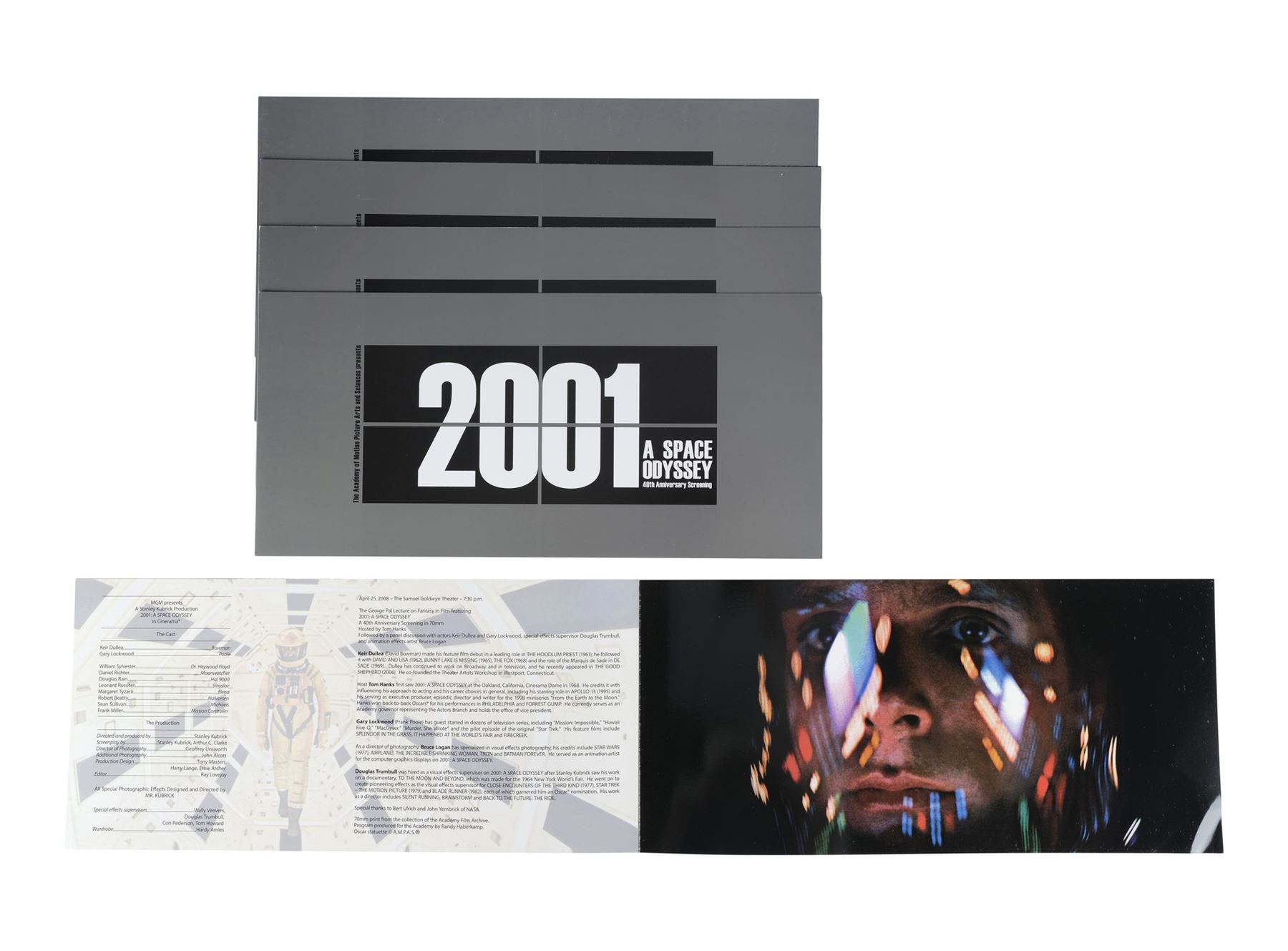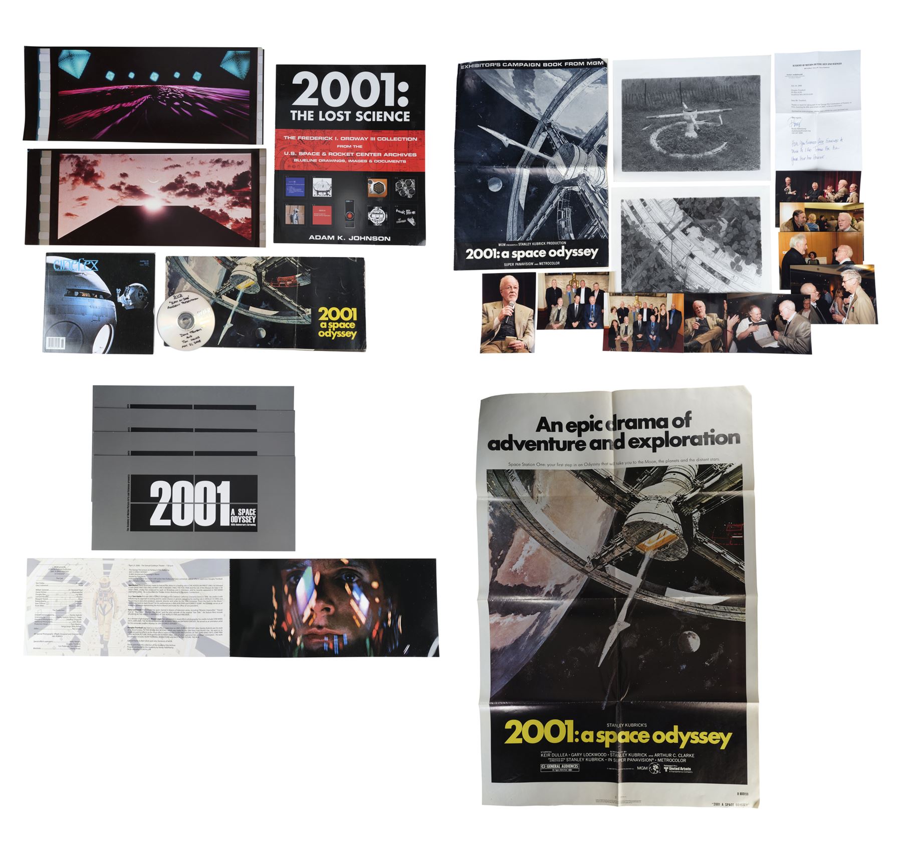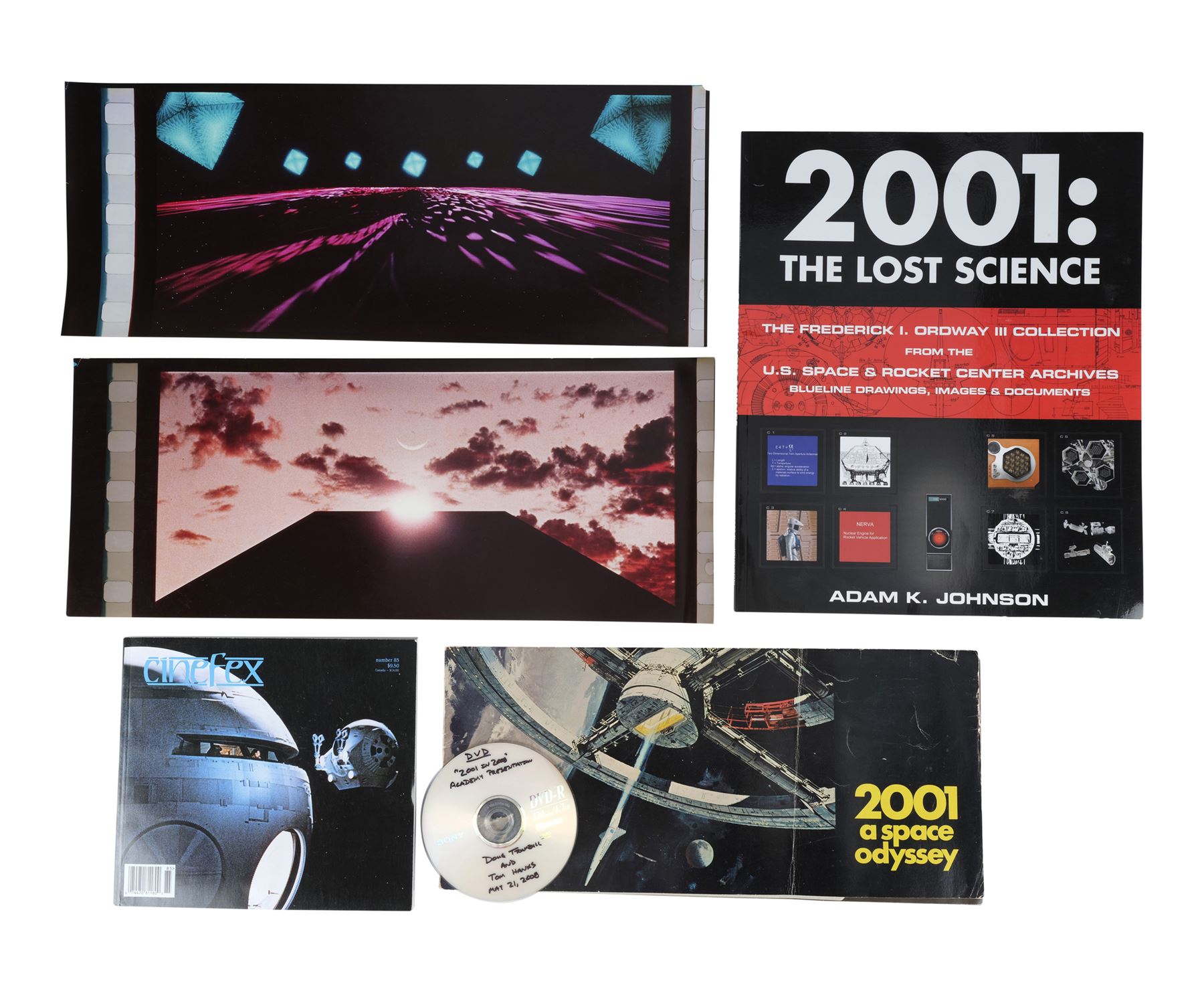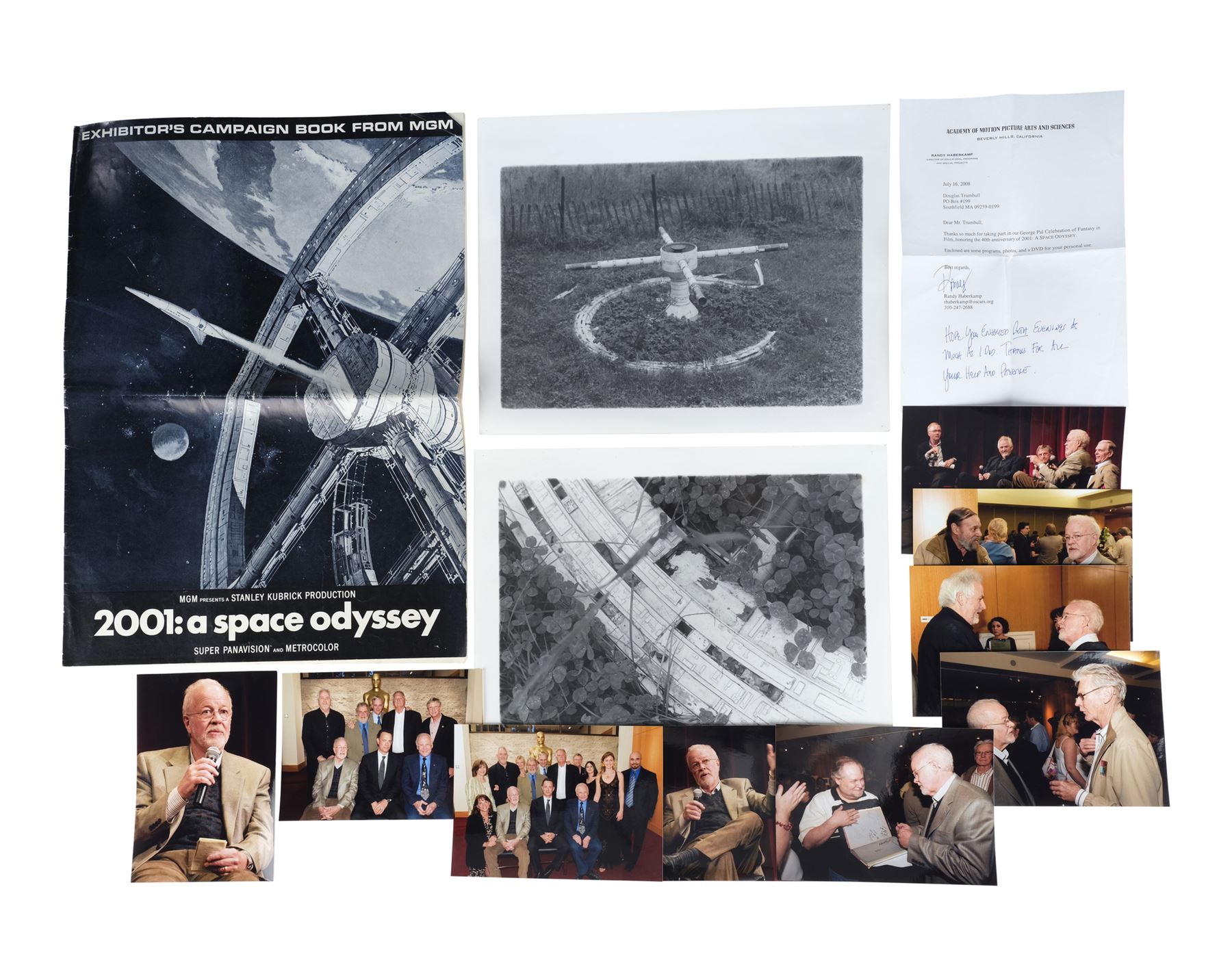 2001: A SPACE ODYSSEY (1968) - Douglas Trumbull Collection: Archive Booklets, Screening Booklets, Photos, Poster, and "2001 in 2008 Academy Presentation" DVD - Archive booklets, screening booklets, photos, a poster, and a "2001 in 2008 Academy Presentation" DVD from Stanley Kubrick's 2001: A Space Odyssey from the collection of special photographic effects artist Douglas Trumbull. It consists of a "2001: The Lost Science" archive booklet by Adam K. Johnson; a folded Exhibitor's Campaign Book from MGM; a Cinefex "2001: A Space Odyssey" film archive booklet; six screening booklets from MGM and the Academy of Motion Picture Arts and Sciences; two color print photo strips; two black-and-white photos marked "Found in a dumpsite England"; a folded film poster; and a DVD marked "2001 in 2008 Academy Presentation Doug Trumbull and Tom Hanks May 21, 2008" with an envelope from the Academy of Motion Picture Arts and Sciences with a letter signed by Randy Haberkamp and personal note to Trumbull and nine color print photos. This lot exhibits fold creases, discoloration, and loose pages in the MGM screening booklet. Dimensions: (largest) 20" x 8" (51 cm x 20.5 cm)Visual effects pioneer Douglas Trumbull was born in Los Angeles in 1942. After abandoning architecture for technical drawing and cartooning, his talent for photorealism soon earned him work at Graphic Films, an esteemed Hollywood studio for which he designed groundbreaking cosmic effects for the 1964 New York World's Fair. After seeing Trumbull's work, director Stanley Kubrick hired him to create animations and VFX shots - including the iconic Star Gate sequence - for what would become his seminal masterpiece 2001: A Space Odyssey. From that film's success, Trumbull became one of the industry's most trusted photographic effects experts, designing and producing legendary screen moments in such sci-fi landmarks as Close Encounters of the Third Kind, Star Trek: The Motion Picture, and Blade Runner, all three of which earned him Academy Award& reg; nominations. In addition to directing the cult classics Silent Running and Brainstorm, Trumbull later received a Scientific and Engineering Award for his high-speed photography process Showscan in 1993, one of two specialty awards given to him by the Academy of Motion Picture Arts and Sciences before his death in 2022. 60 years since he first made his mark on global cinema, Propstore today celebrates Douglas Trumbull by presenting a selection of rare memorabilia from his personal collection to the public.