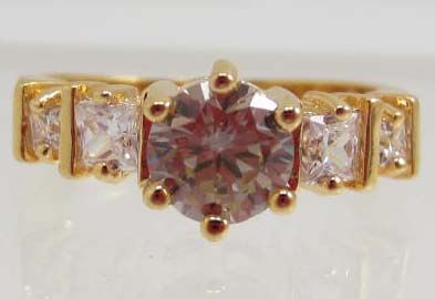 13455 - GOLD PLATED PINK SAPPHIRE & TOPAZ RING - SIZE 6