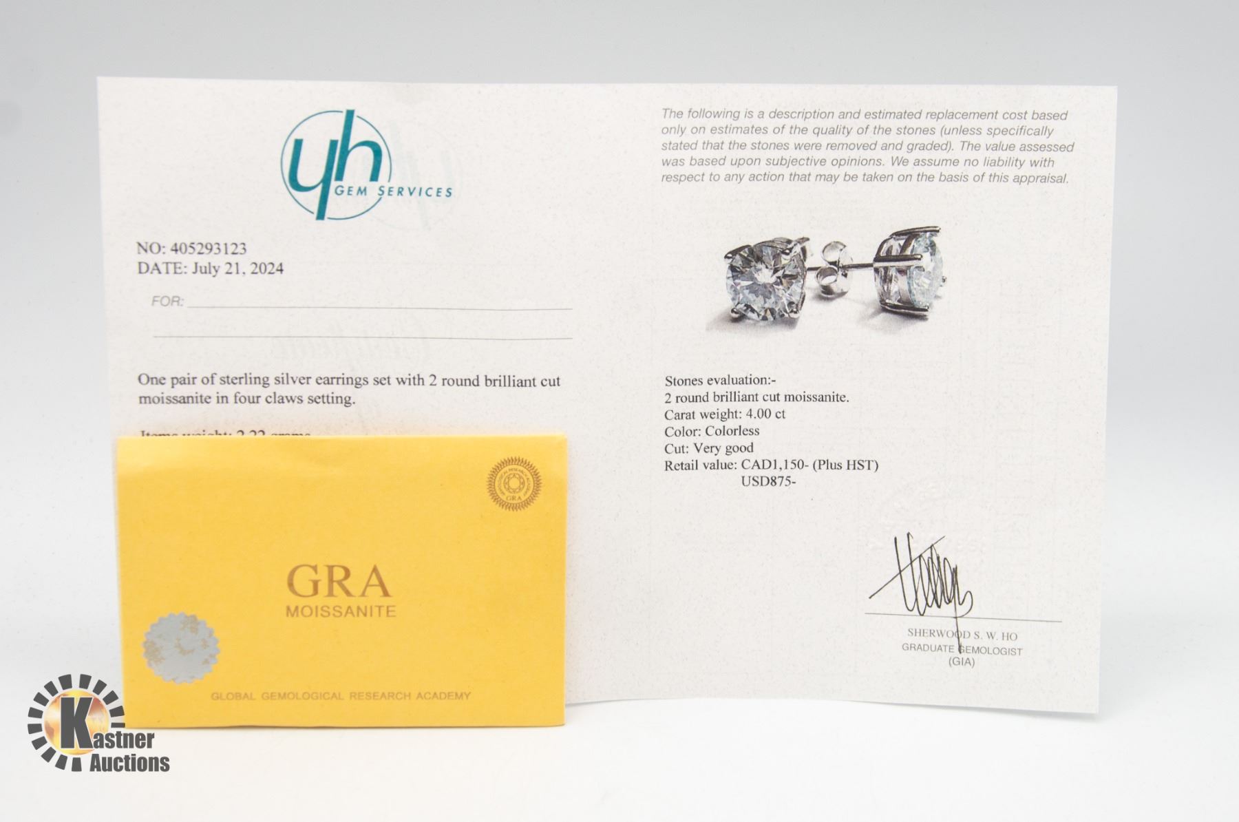 MOISSANITE STONES VVS D COLOR SET IN CENTER OF 4 CLAW BASKET HEAD SET IN 925 SILVER EARRINGS COMES WITH GIFT BOX RETAIL VALUE $1,150.00