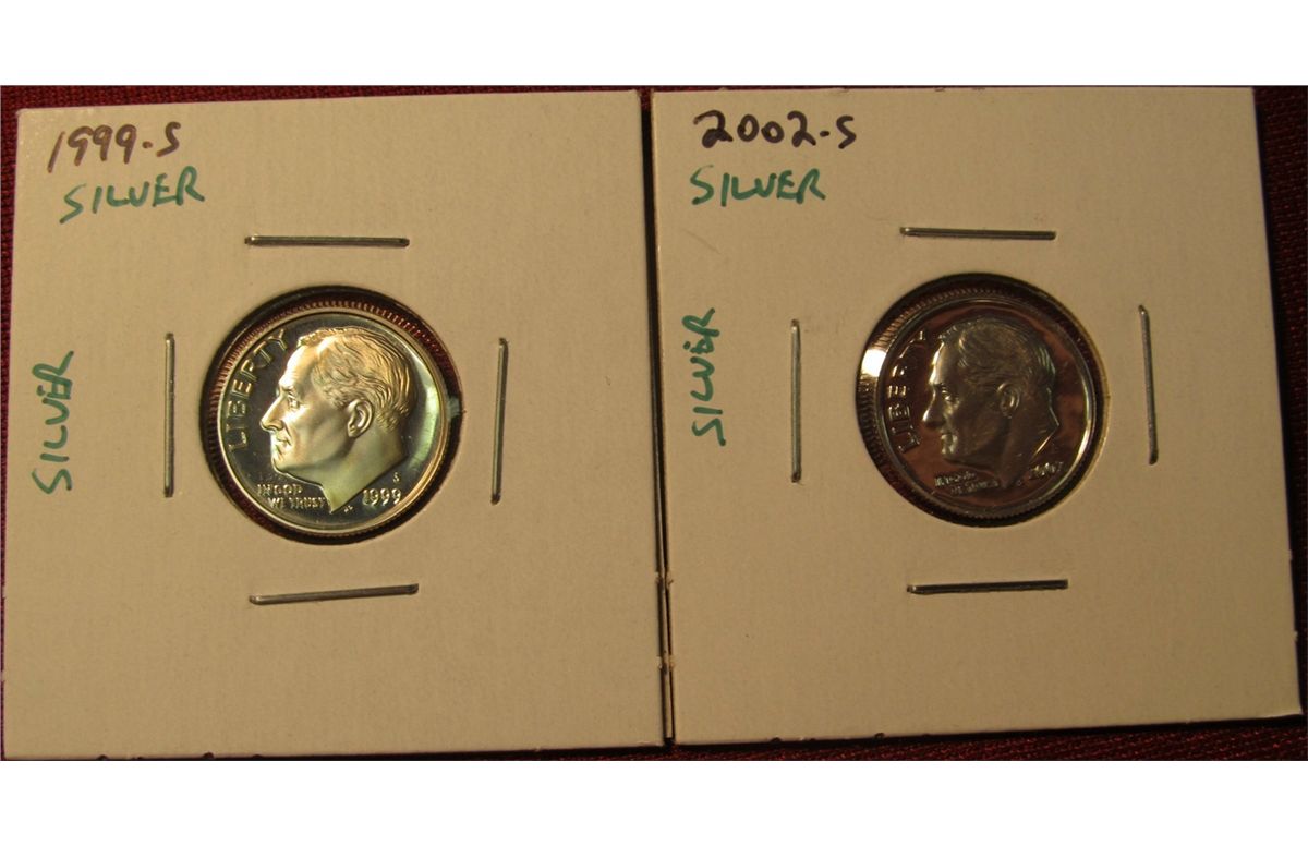 1347. 2 Proof SILVER Roosevelt Dimes – 1999-S & 2002-S